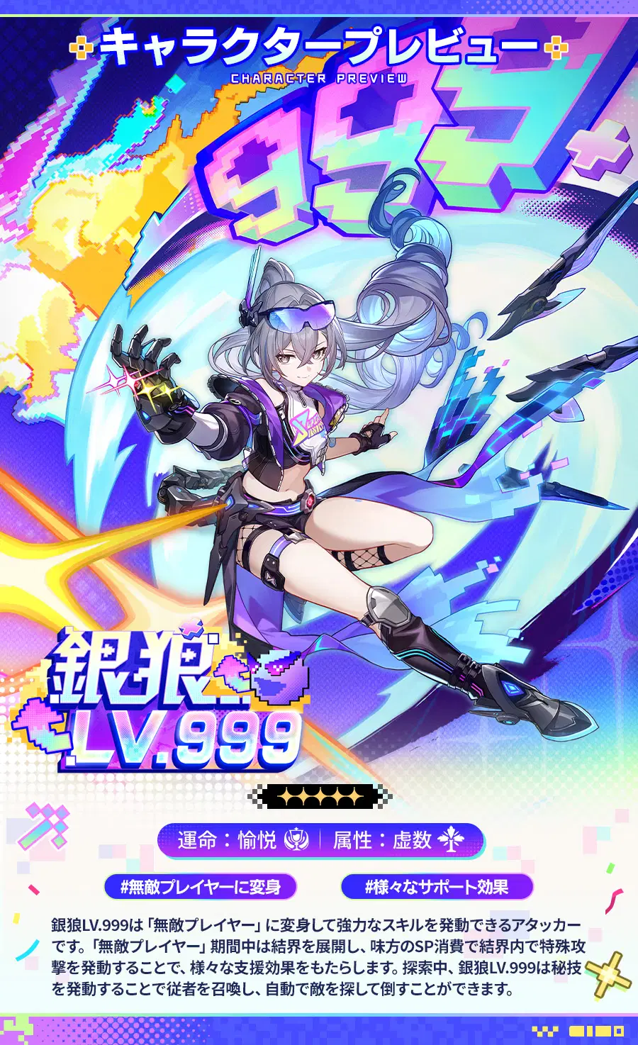 開拓者の皆様、本日は「銀狼LV.999(愉悦・虚数)」のキャラクタープレビューをお届けします。
