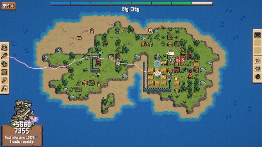 本作は、相乗効果(シナジー)が満足感を生むローグライク要素と街づくり要素をブレンドしたデッキビルダーだ。プレイヤーはデッキではなく街を成長させることを目的とし、手作りの島々に入植する。建物を慎重に配置することで強力なシナジーを解き放ち、連鎖的なコンボを発動させるのが特徴だ。ランとランの合間には首都に戻り、獲得した収益を使って建物、レリック、ボーナスといったコンテンツをアンロックする。