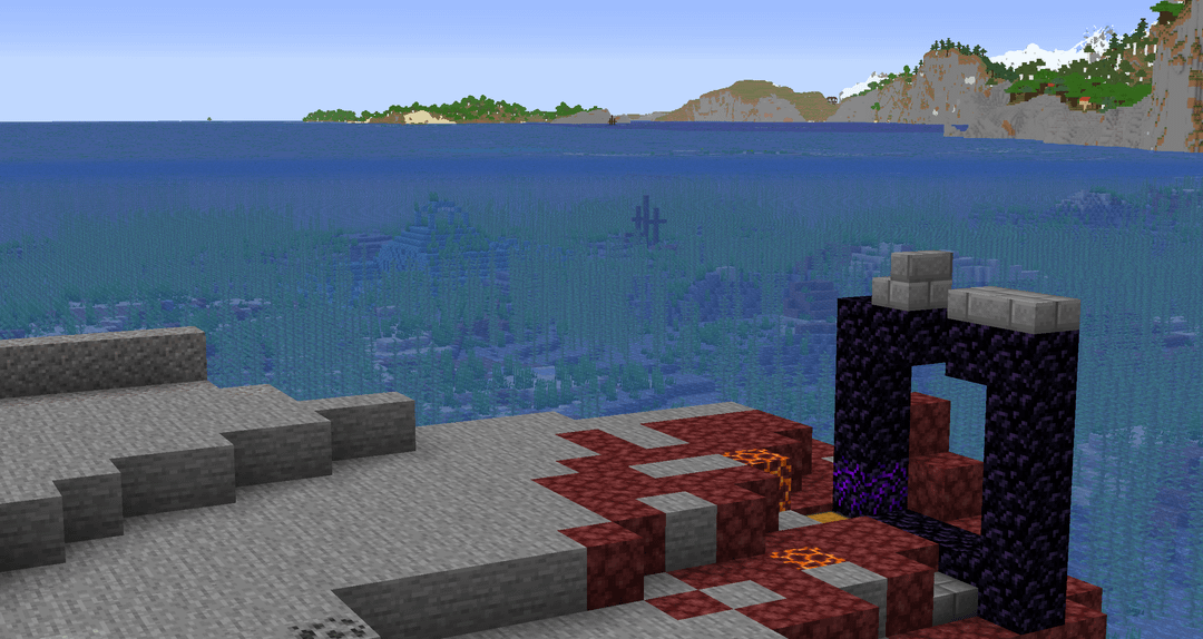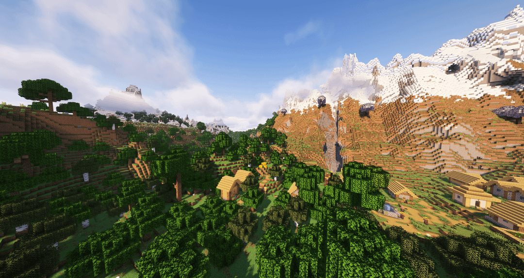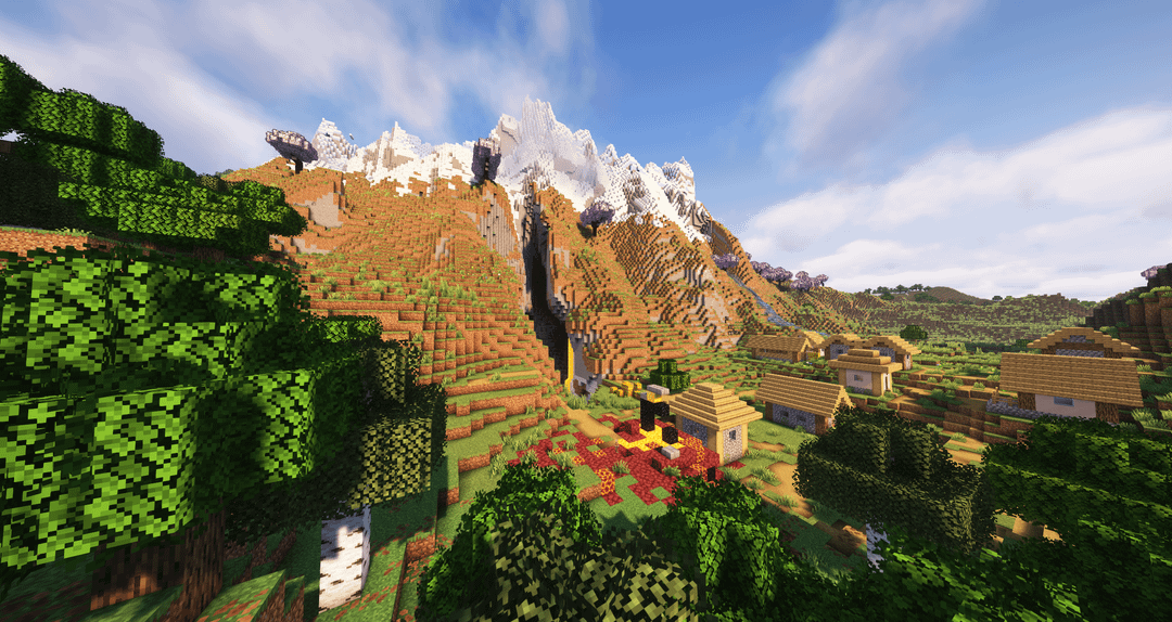 この美しいシードのせいで休憩しなければならなかったとき、私はハードコア マインクラフトをプレイしていました。まず、2 つの桜の木立の井戸の間の山の約 190 ブロックの場所にスポーンします。そして、山中に点在する 2 つの廃墟のポータルがあり、1 つはドリップストーンの洞窟の近くの村の真ん中にあります。北には略奪者の塔があり、南には別の村もあります。最後に、4 つの水生神殿が互いに近くにあり、そのうち 2 つはすぐ近くに難破船があります。
