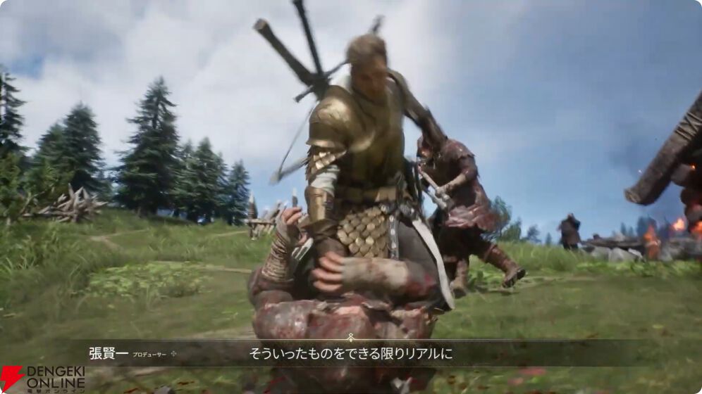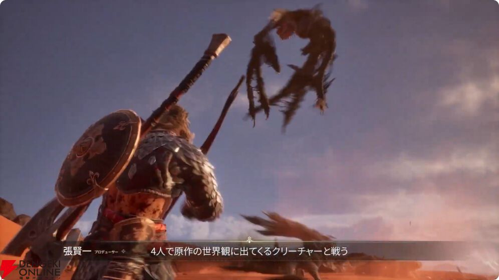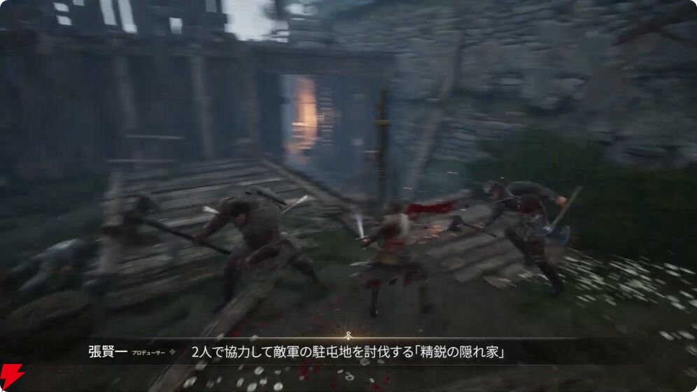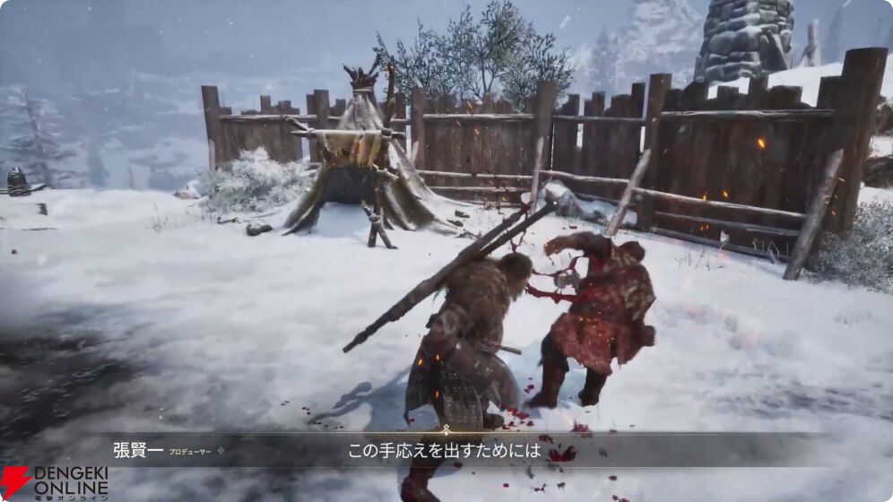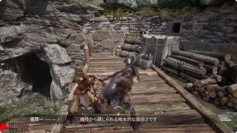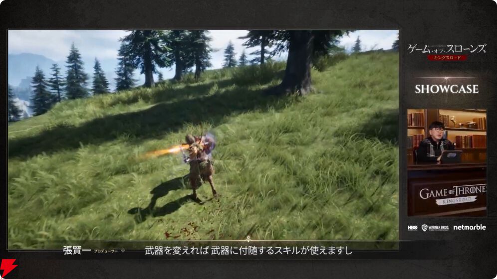 プロデューサーの張賢一氏より本作のアクションについての話がありました。派手な魔法や召喚術なども魅力的ではありますが、『ゲーム・オブ・スローンズ』という原作を考えると、少し合わないと判断して、最も重要に考えながら開発したのは操作から感じられる棍本的な面白さとのことです。