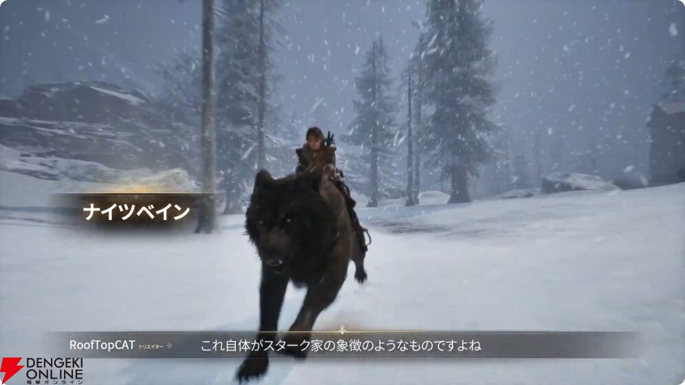 マルチだけではなく、ソロでも楽しめる要素として、『ゲーム・オブ・スローンズ』の歴史に関する知識が刻まれた石板を探すパズルや、特定の地域で凶暴な野生動物を狩るコンテンツ、フィールドに隠されているカラスの痕跡をたどりながら敵を倒して報酬を得るコンテンツなどがあるとのこと。