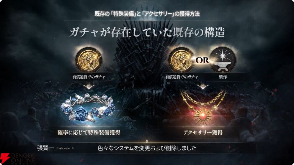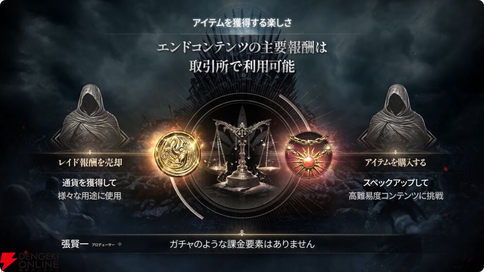 とくにアクセサリーは、エンドコンテンツから手に入れプレイヤー同士の取引も可能にしてアイテムを獲得することの面白さを最大限活かしたそうです。