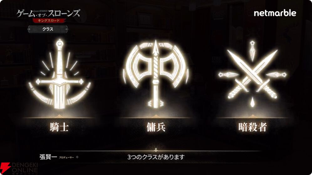 本作では、騎士、傭兵、暗殺者の3つのクラスがあります。