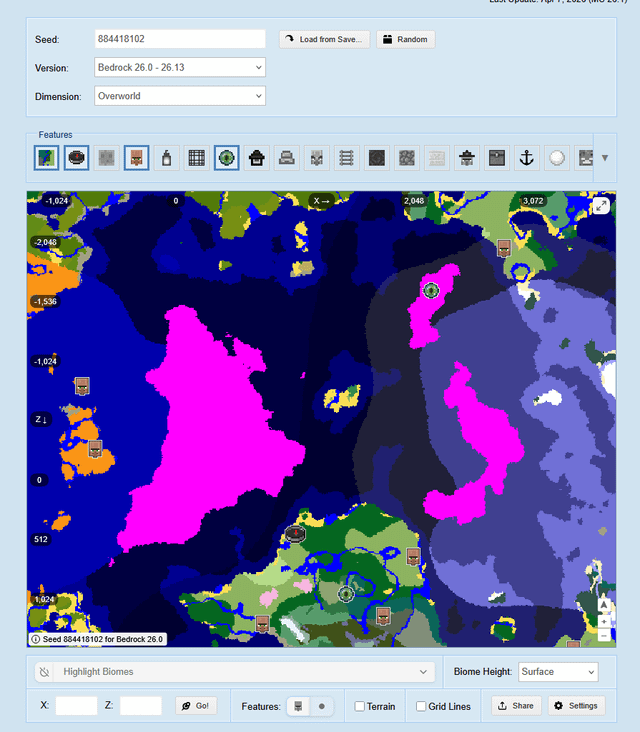 バージョン: 最新リリース シード: 884418102 コードはX:409 Z:-473 緑豊かなバイオームのある島に向かって北西に向かい、エンドポータルルームのある鎖状の島に向かって北東に進みます。画像に示されているように、両方の島の中央に通常の島もあります。 バージョン: Bedrock & Java ワールドタイプ: デフォルト (これは大きなワールドではありません) by One-Tear-1296
