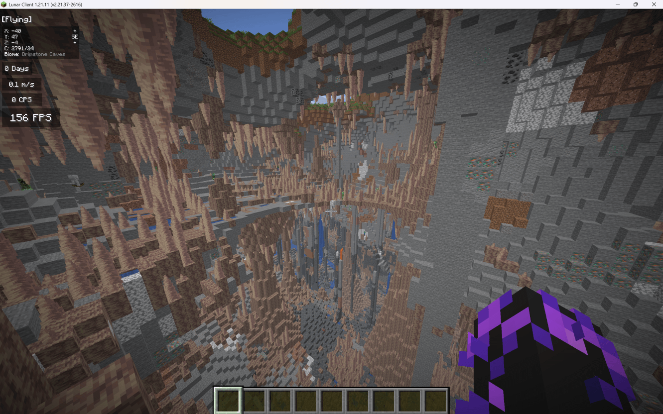 ワールドをランダムにロードしていたら、この洞窟にスポーンしました(笑)。残念ながらそこには建造物はありませんが、近くに他の大きな洞窟システムがあります。