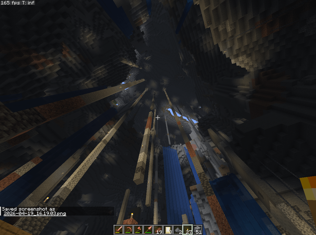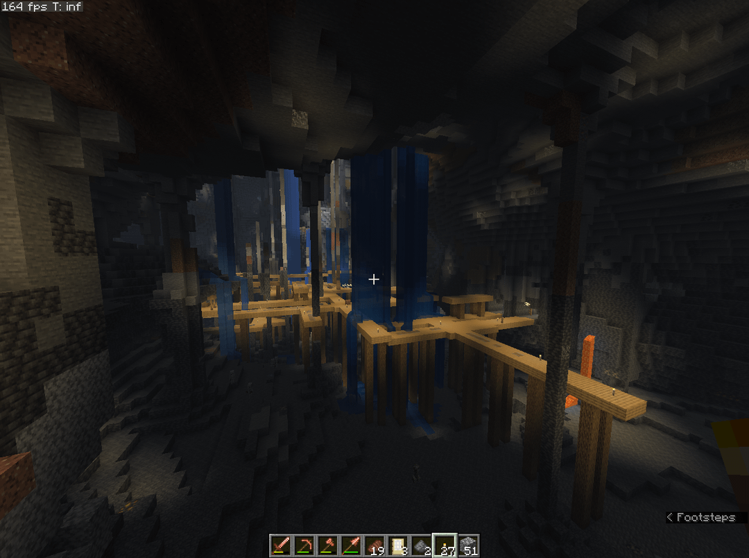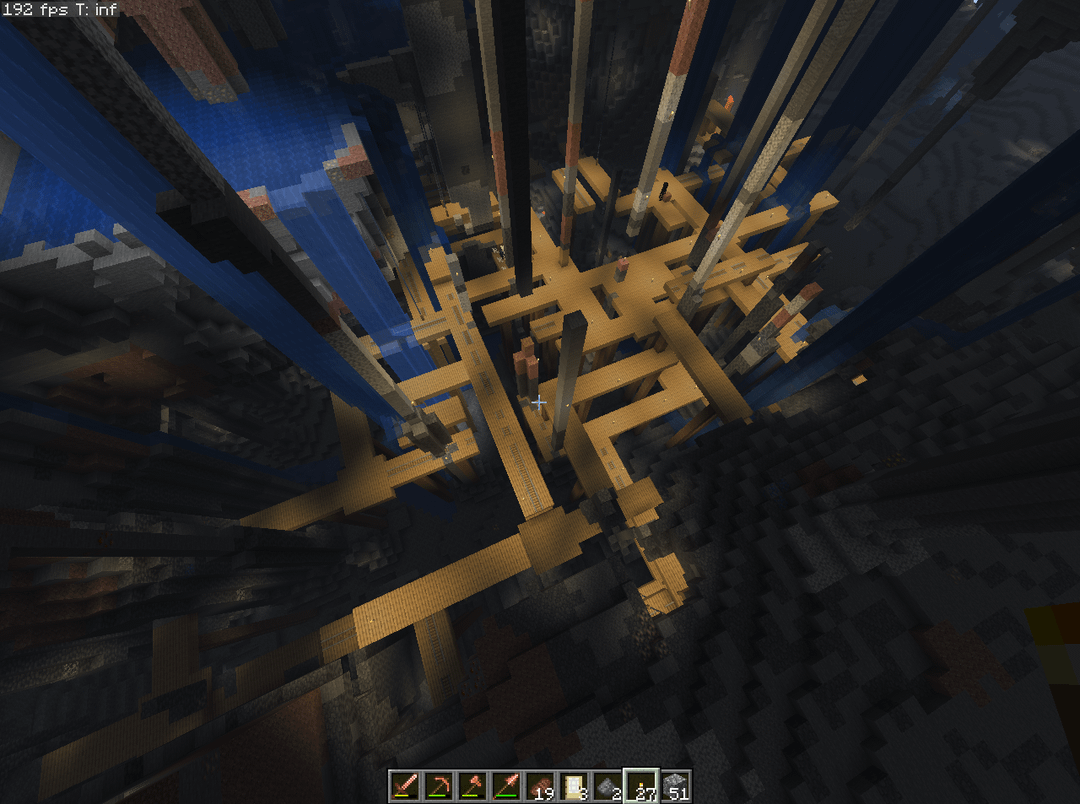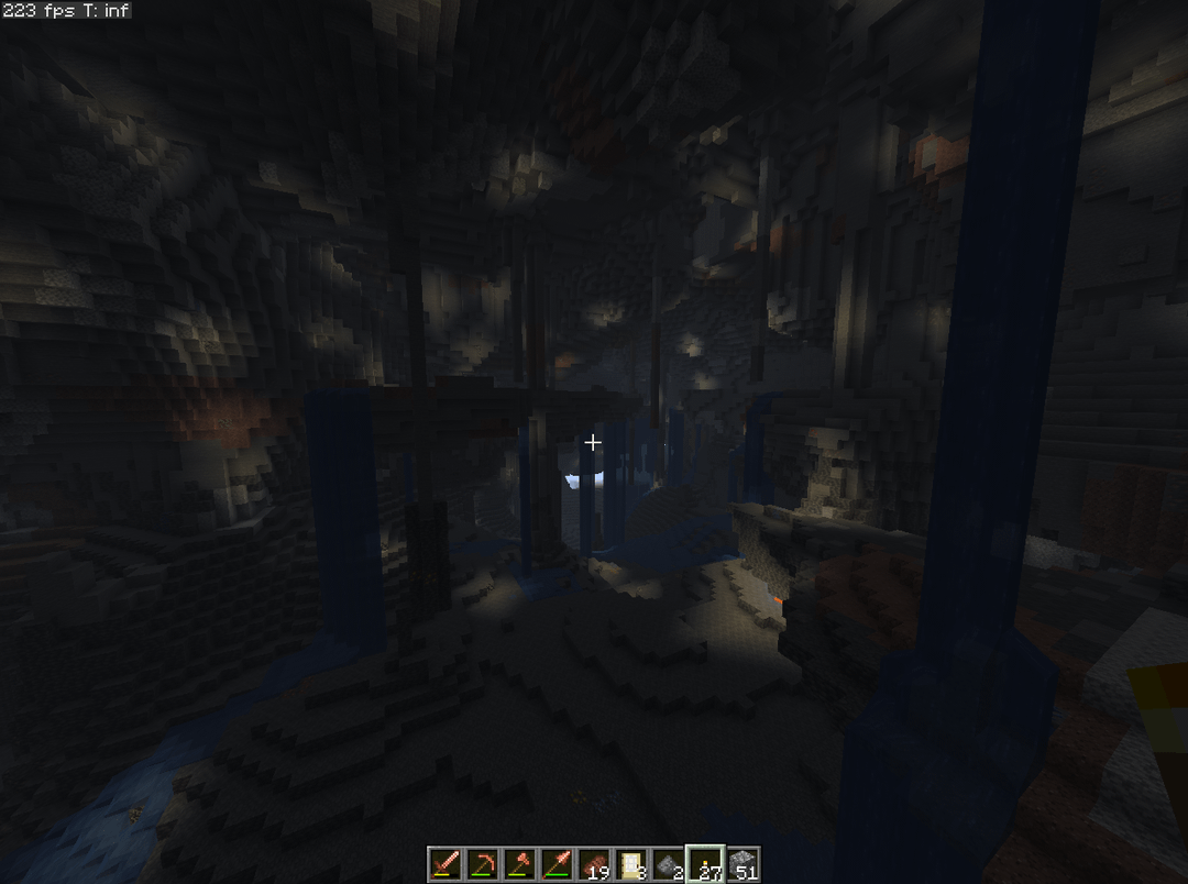 私はサバイバル マインクラフトで遊んでいたところ、ARG から出てきたようなこの洞窟システムを見つけました。