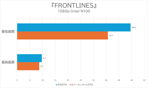 最高画質では平均9.6fpsで、FRONTLINES同様にハードウェア性能が全く足りていなかった。