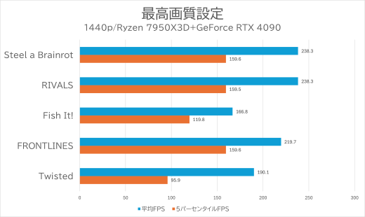 結果を見ると、ほとんどのワールドで平均240fps前後を記録。もちろん「どうしても4K/高FPSの環境で遊びたい」ということであれば相応のスペックが必要になるが、大半のプレイヤーにとっては高スペックのゲーミングPCが必要になるシーンは少ないだろう。