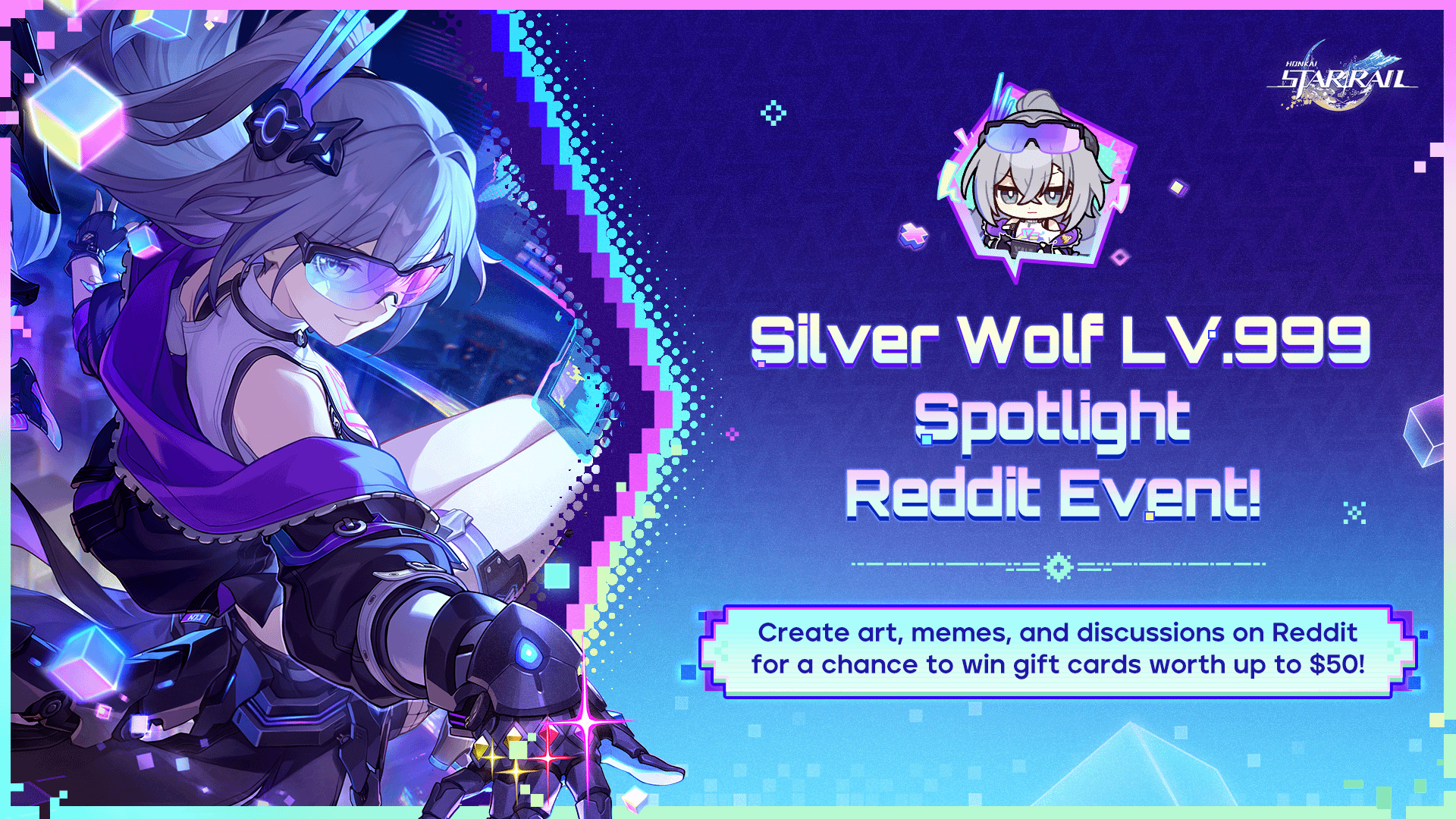 シルバーウルフ LV.999、✧ "コズミコンコレクティブレジェンドプレイヤー" ランク1✧!シルバーウルフ LV.999 に焦点を当てたオリジナルのアート、ミーム、ディスカッションを作成し、サブレディットに投稿してギフトカードを獲得するチャンスを獲得しましょう!