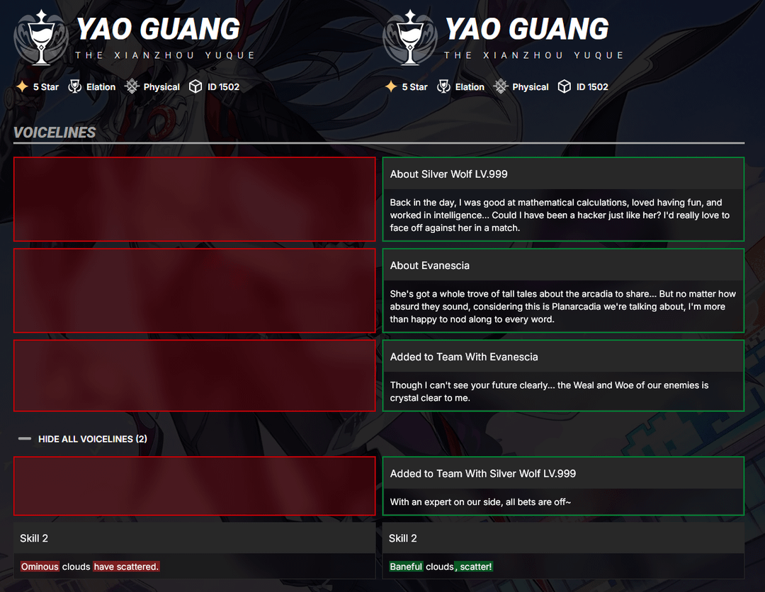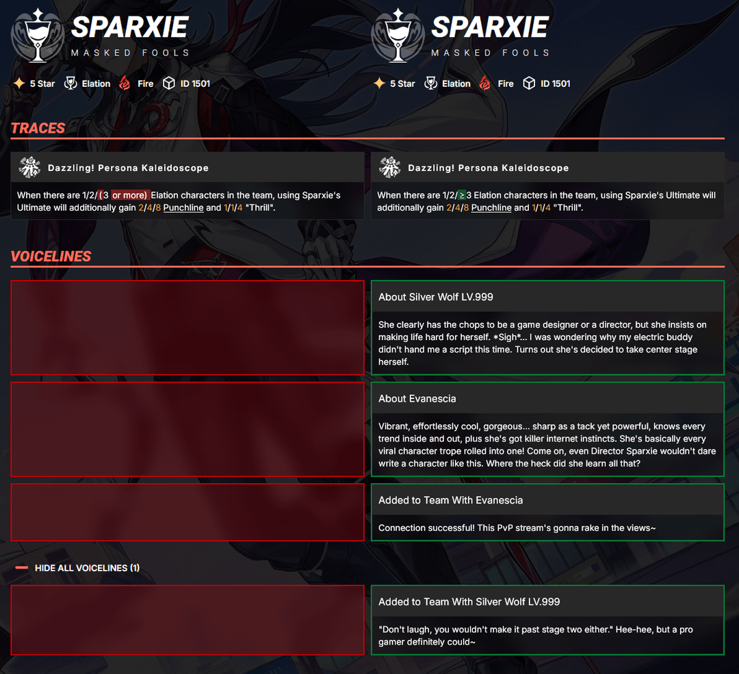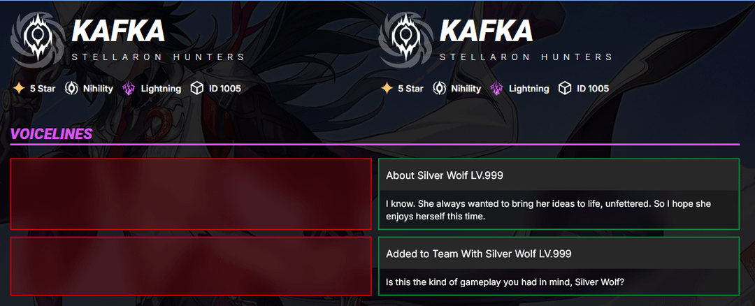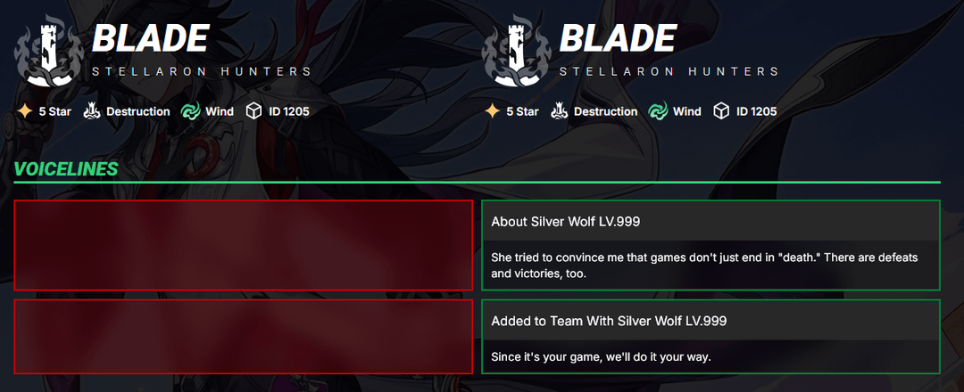 変更履歴: https://hsr.gachabase.net/changelog/release アッシュベール – 変更点 ブレード – 変更点 スパークシー – 変更点 ヤオ・グアン – 変更点 ヘルタ – 変更点 ホタル – 変更点 カフカ – 変更点 親愛なる- 変更点 位置 – 変更点 シルバーウルフ – 変更点 by Gachabase