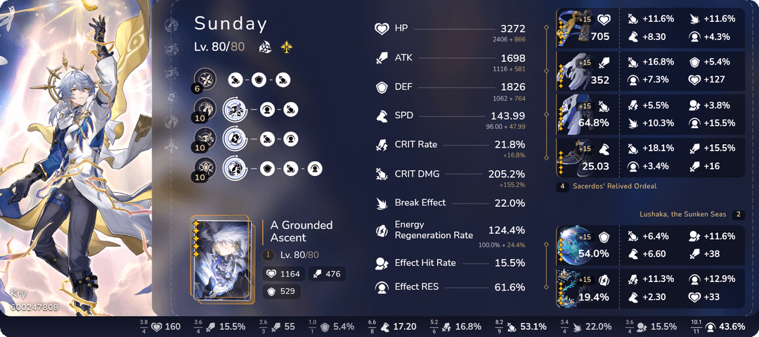 私の日曜日をとても誇りに思います。おそらく彼は、私がほとんどガイドなしで自分で構築した唯一のキャラクターの 1 人です (アベンチュリンがもう 1 人です)