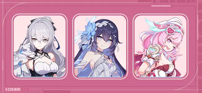 単体効果:それぞれキャラの与える氷ダメージアップ、全ダメージアップ、受ける全ダメージダウンの効果を持つ。「新生の銀翼」装備時は追加の効果を獲得し、チームメンバーにバフ効果を付与する。