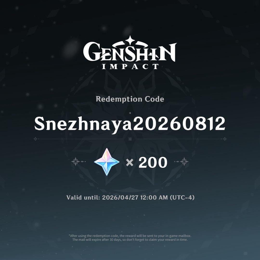 Primogem引き換えコード:Snezhnaya20260812