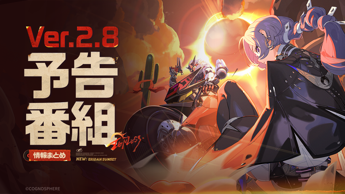 新・エリー都の落日——日は沈む。夜の訪れを待ち望むのは、誰? 新たなエージェント「プロメイア」、「スターライト・ビリー」がまもなく登場! 「星見雅」の新コスチューム、サプライズ登場! さらにエージェントの復刻、新ボンプ、新ストーリーや新イベントもVer.2.8で皆様をお待ちしております!ぜひお楽しみに! 今回の予告番組で配布された交換コードは4月26日 24:59:59(JST)に期限が切れます。お早めに交換してください。 下の画像をチェックして、予告番組を振り返りましょう!
