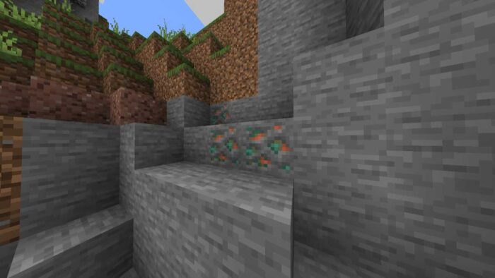 銅は2021年の「洞窟と崖」アップデートで追加された鉱石。石炭や鉄のように洞窟で手に入り、「石のツルハシ」以上で採掘できます。