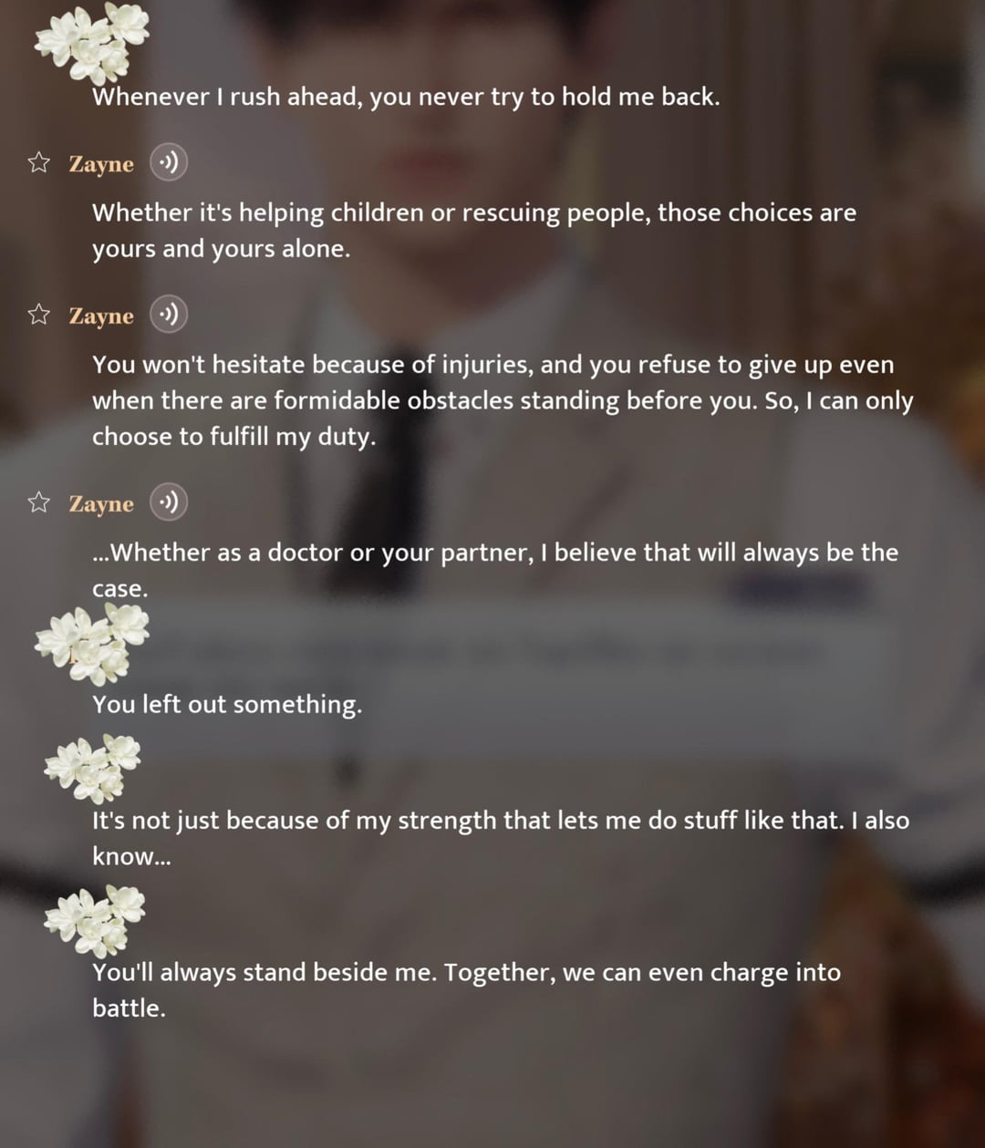 しかし、私はゼインのライターが常にゼインのテーマをうまくカプセル化して固め、カードのひとつひとつに言葉をとても上手に表現していることに、いつも本当に驚かされます。私がゼインについて気に入っている点の 1 つは、私たちがしなければならないと感じていることを彼が決して妨げないことです。たとえ彼がどんなに心配していても、私たちに対する彼の信念と愛はそれだけ強いからです。彼は私たちを落ち込ませる重力ではなく、私たちを持ち上げる風です。