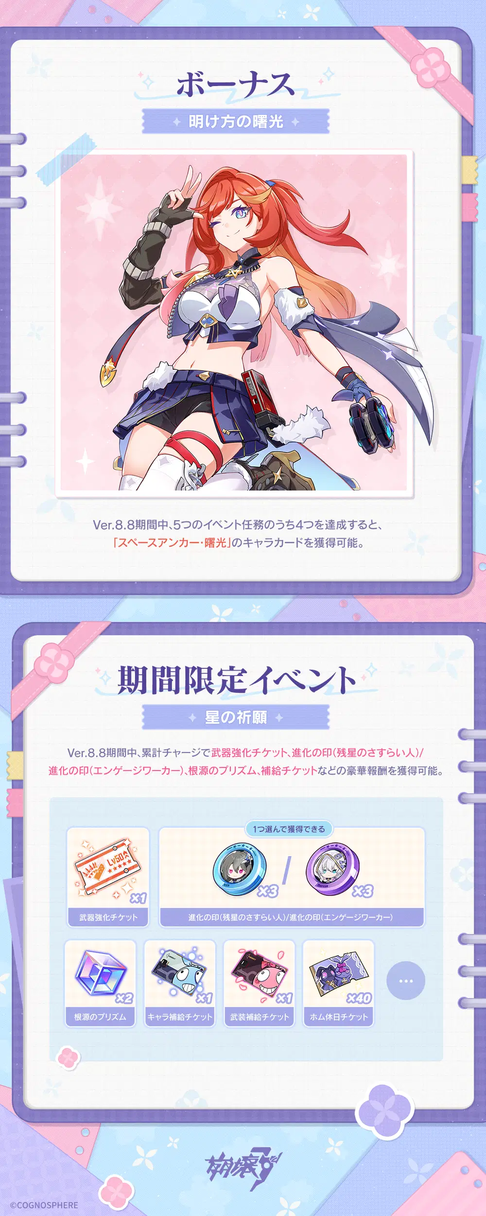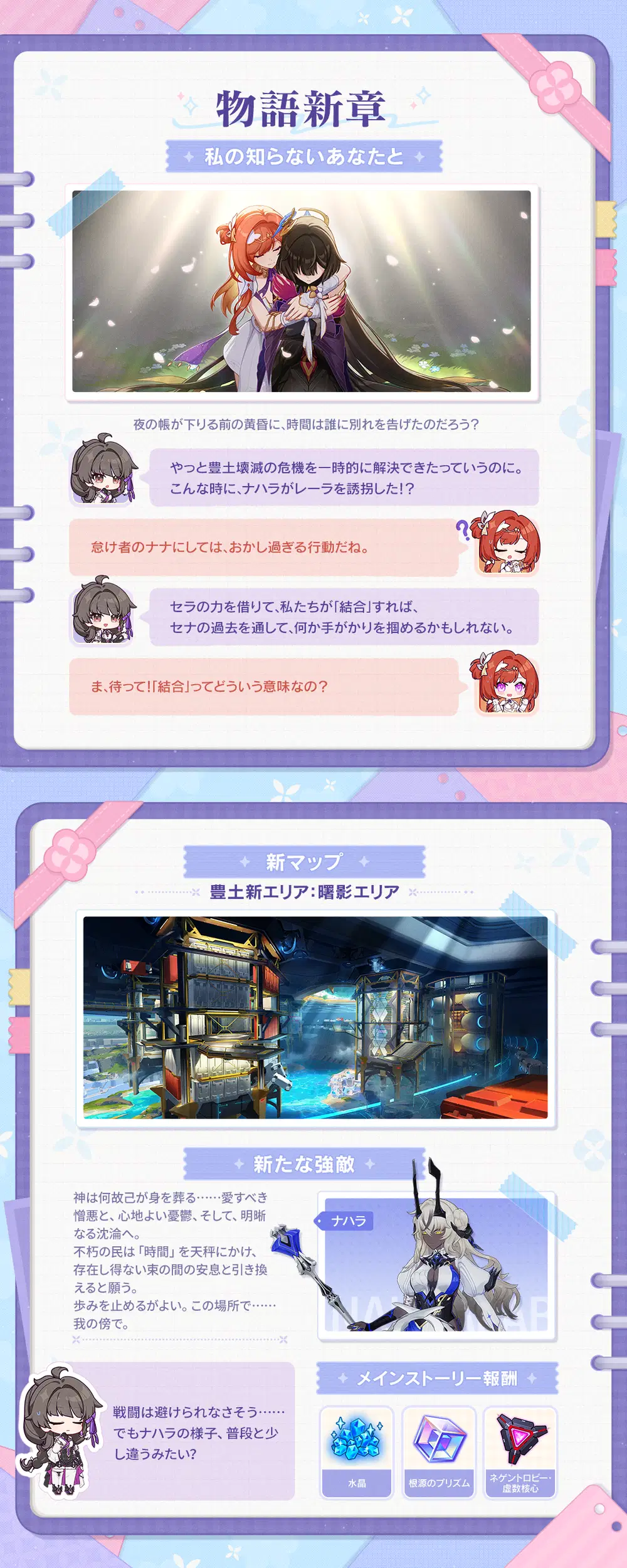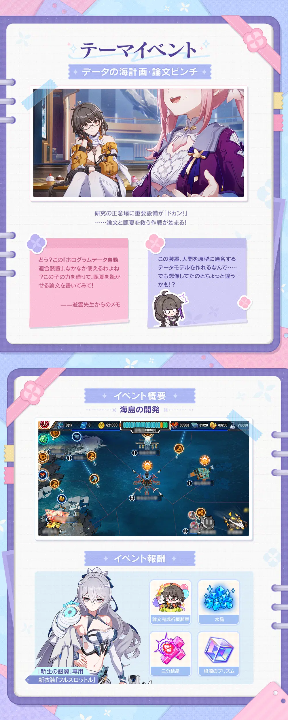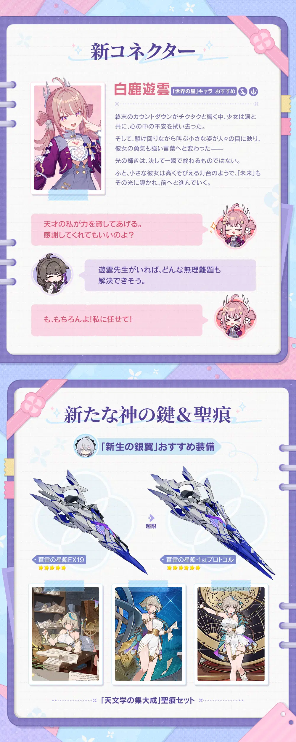 Share Facebook Twitter LinkedIn Pinterest Bluesky Reddit Threads 艦長!Ver.8.8「海を揺蕩う雲」が間もなく更新されるよ~ 新コネクター「白鹿遊雲」、新神の鍵「蒼雷の星船EX19」、テーマイベント「データの海計画・論文ピンチ」、メインストーリー第二部第12章「私の知らないあなたと」など、目が離せない最新情報も続々公開! 下の画像で新バージョン内容を確認しよう!
