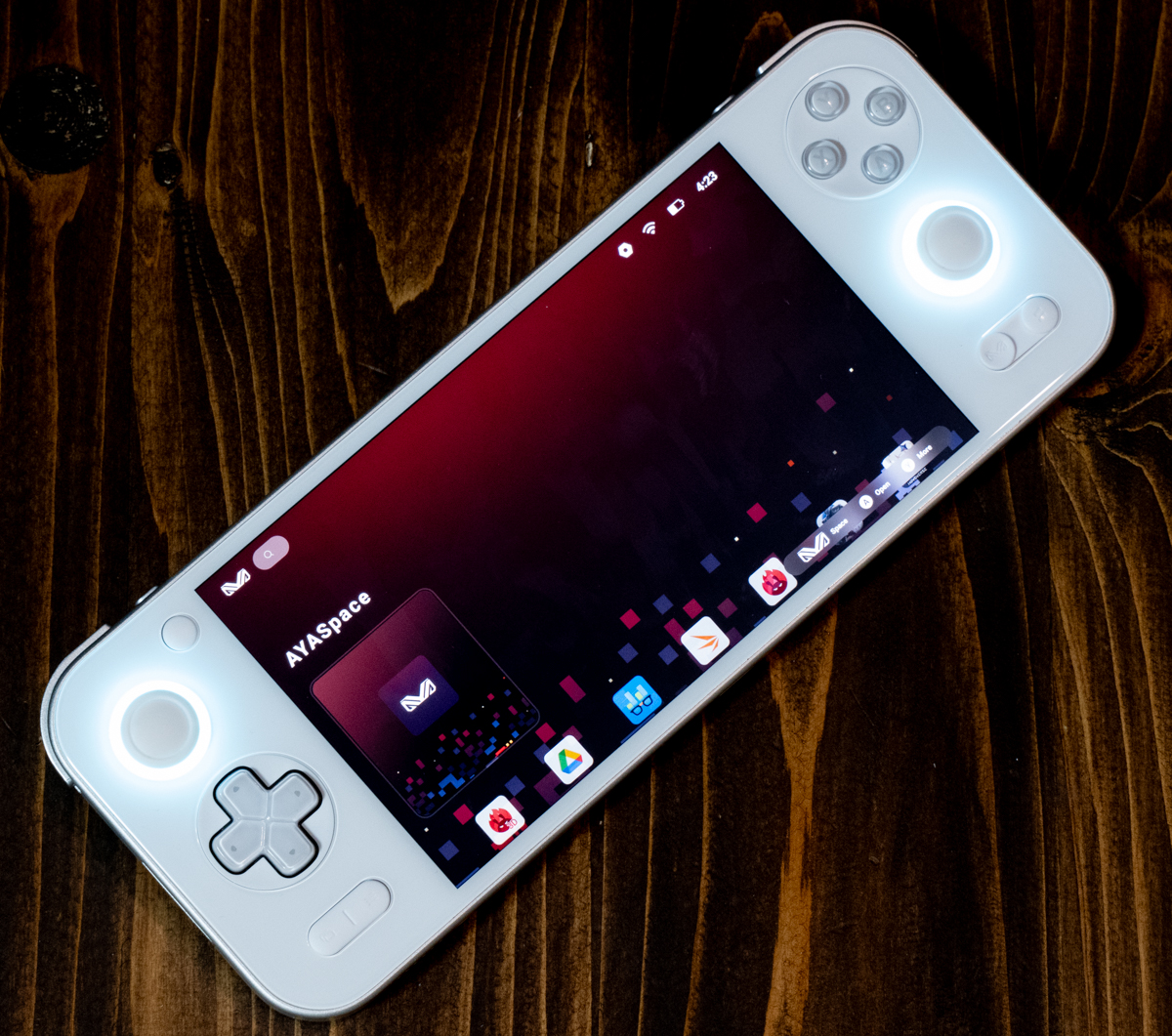 パッド非対応ゲームにゲームパッドのボタンを割り当るには、ゲーム起動中にAYANEOボタン(右スティックの左下)→Controller→(ゲームタイトル)Go to configuration→Mapping pointを画面上にドラッグ→「A B L R Expand Cancel」の中のL/Rを選択することで、L/Rスティックを画面上に配置。ゲーム画面上に移動スティックが配置されているタイトルの場合は、そこにLまたはRを配置し、Repatに設定。そして移動視点移動の場合はLまたはRを配置しHoldに設定。こうすると上手くいきます。位置等が調整できるので、設定を煮詰めてみて下さい。