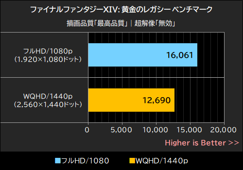 ファイナルファンタジーXIV: 黄金のレガシー ベンチマークでは、グラフィックプリセットを「最高品質」に設定してテストを実行した。なお、超解像は無効にしている。