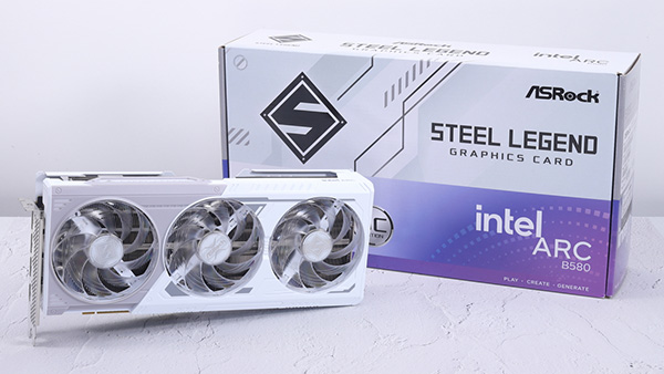 白いビジュアルが印象的なASRockのIntel Arc B580 Steel Legend 12GB OCは、強力なGPUクーラーによってArc B580の性能を最大限に引き出せるビデオカードであり、5万円前後で購入できるミドルレンジ製品の中でもかなり完成度の高い一枚だ。