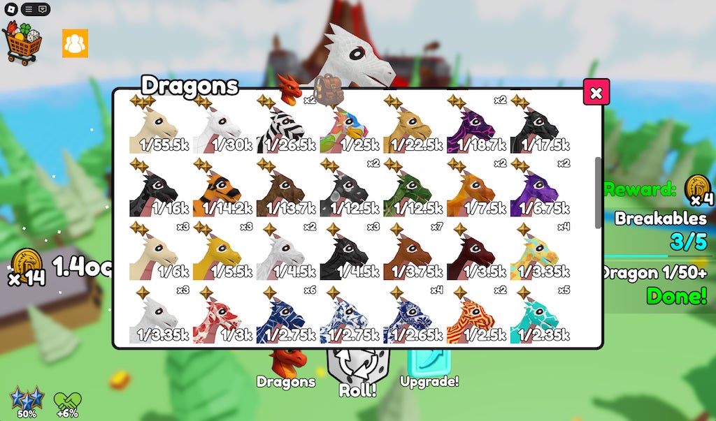 『🐉 RNG Clash: Rise of the Dragon』は、ダイスを振って多種多様なドラゴンを集めるRNGゲームです。