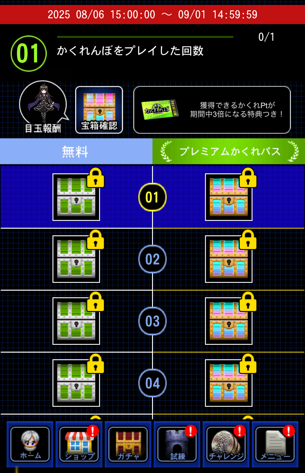 また、かくれんぼ宝箱は「かくれパス」でも大量に獲得することができる。