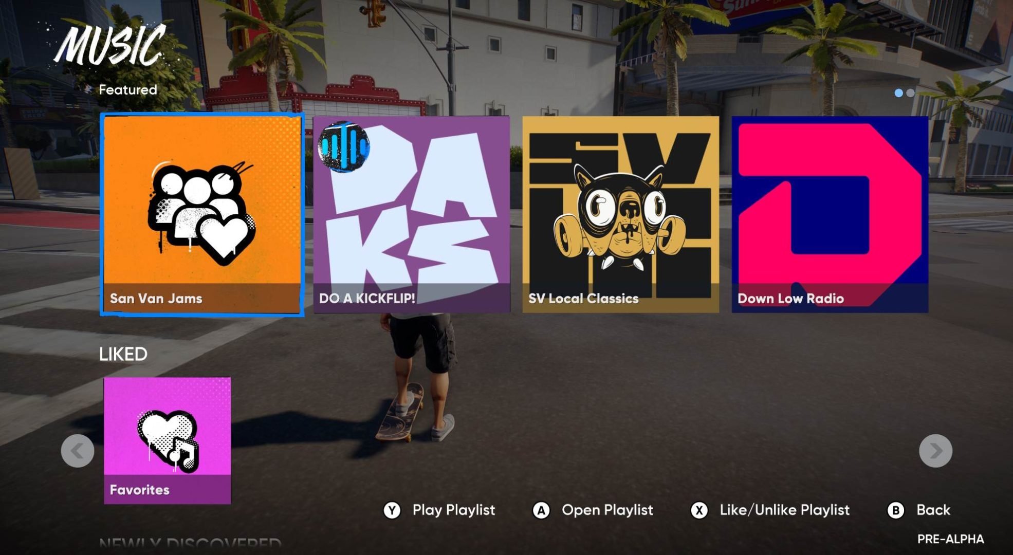 サウンドトラックは「DO A KICKFLIP!」、「SV Local Classics」、「Down Low Radio」という3つのプレイリストにまとめられている。さらに全プラットフォームのプレイヤー人気によって選定された「San Van Jams」というプレイリストも作成されるとのこと。プレイヤーがお気に入りに追加した曲も「Favorite」というプレイリストにまとめられるため、気に入った楽曲群を繰り返し聴くことも可能だ。また作中のさまざまな場所で流れる音楽を発見し、新しいサウンドトラックとして収集できるという。探索が一層はかどるだろう。