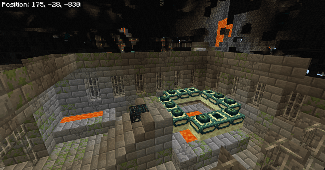 KeimaJirou on 2025-09-19 12:23 pm Seed: 2331083476134225084 Bedrock 1.21.60+ (including 1.21.101) At spawn. An end portal having 8 eye is about 1/300k chance.