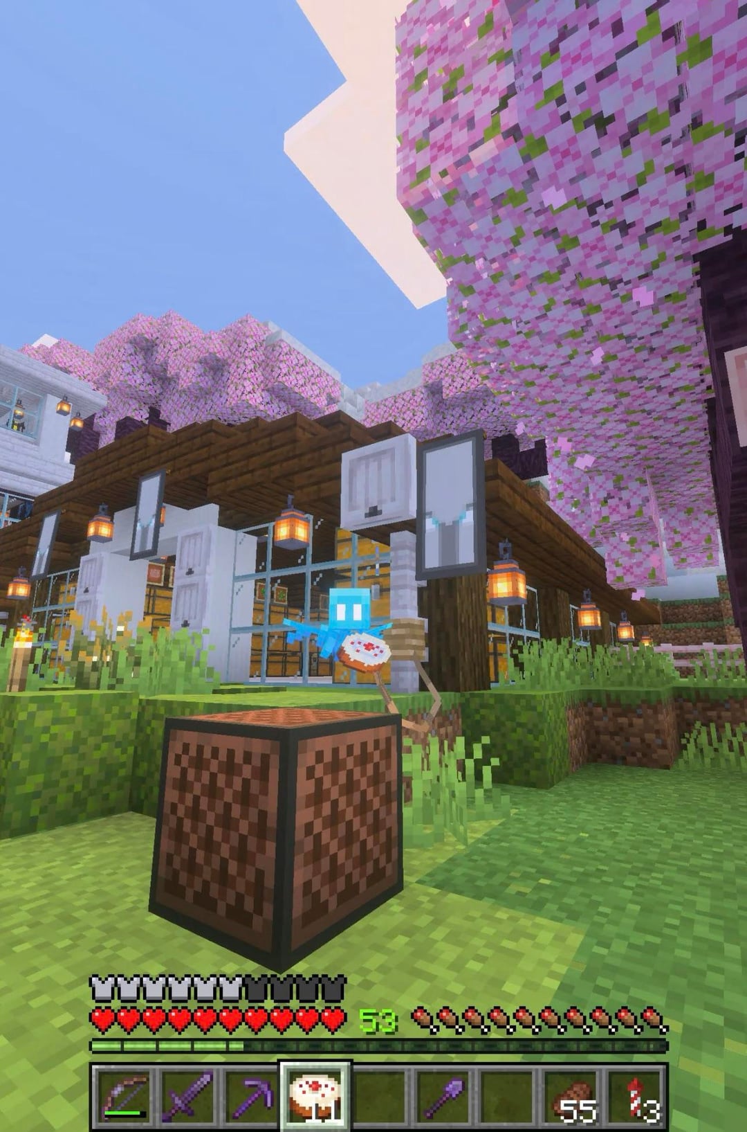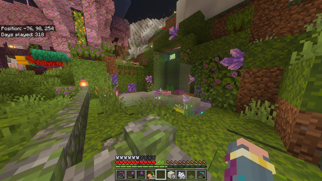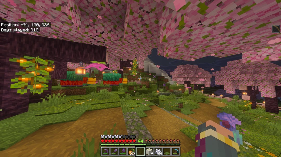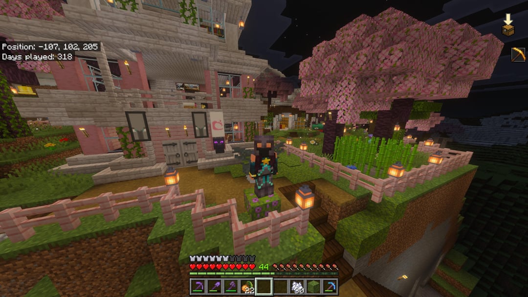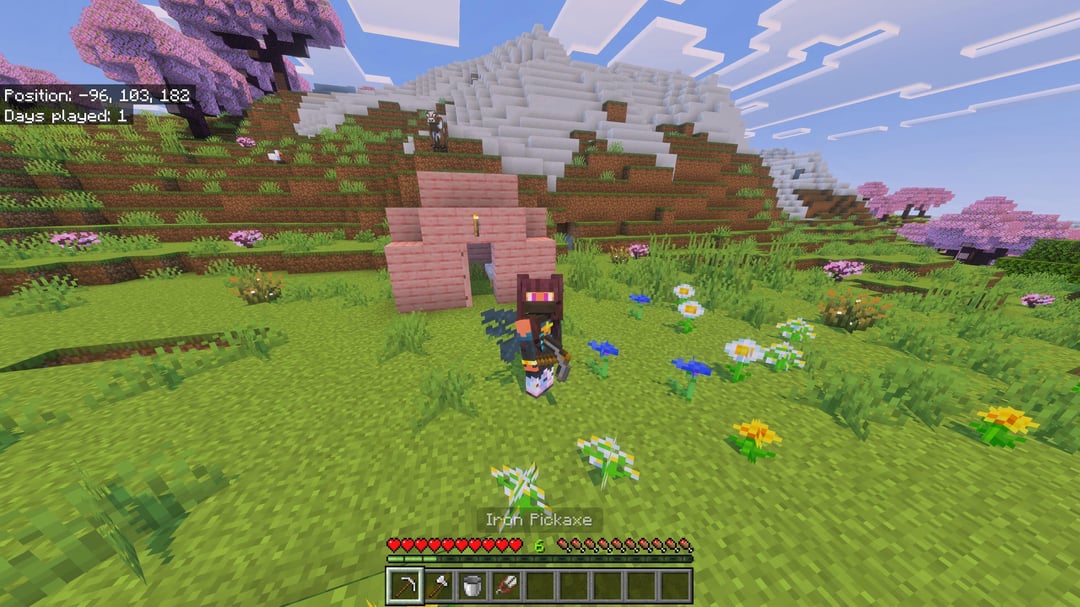 最後の写真は私の最初の家でした。チェリーバイオームに出現したので、私は完全にダートハウスをスキップしたので、もちろん、私の謙虚な住まいは桜の木でできていました。
