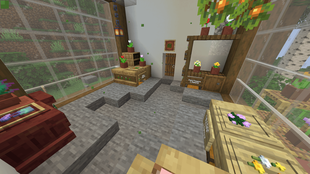 ショップのデザインで植物や花を収納するためのストレージを構築しました。