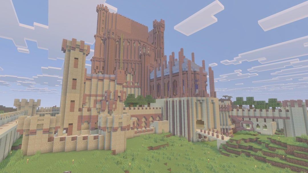 ゲーム・オブ・スローンズのテレビ番組で示されたレッドキープを参考にしました。実際には 3 日かかり、半分の時間は砂岩と花崗岩の採掘に費やされました。 あちらこちらにパッチが当てられていない穴があることはわかっていますが、基地からは見えませんし、構築するのに本当に疲れているので、完成したと考えています:p by Asleep_Bee8536