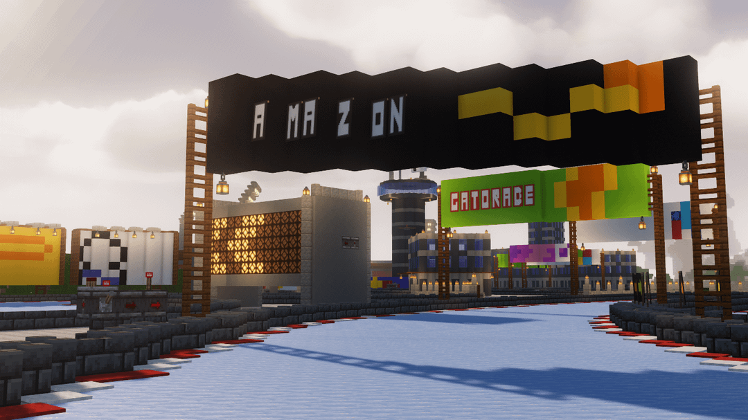 サバイバルでレッドストーンタイマーを使ってアイスボートレーシングトラックを建設しました! (0.1秒までの精度)