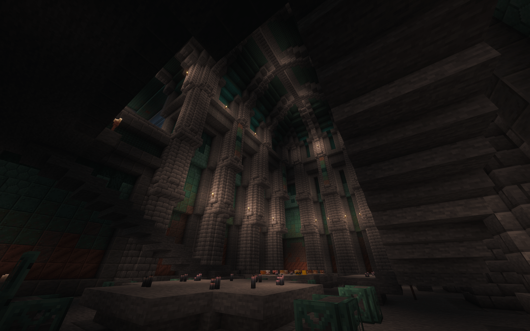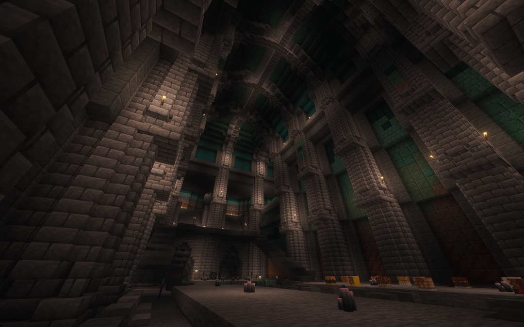 私のユーザー名は Amish3 で、このメガベースを作成しました。たくさんの内廊下と巨大なアーチ型天井の部屋を備えています。ただそれを見せびらかしたかっただけです。これは、私が 2 年半使用している SMP である DementiaCraft で作成されました。