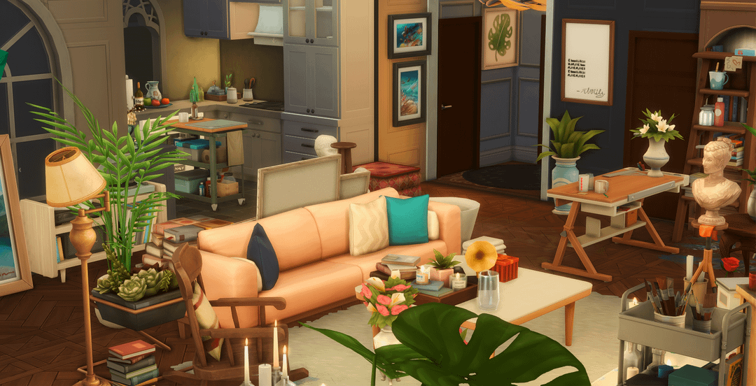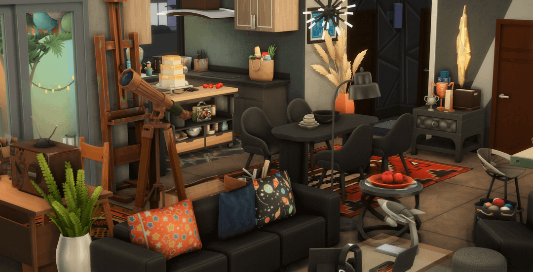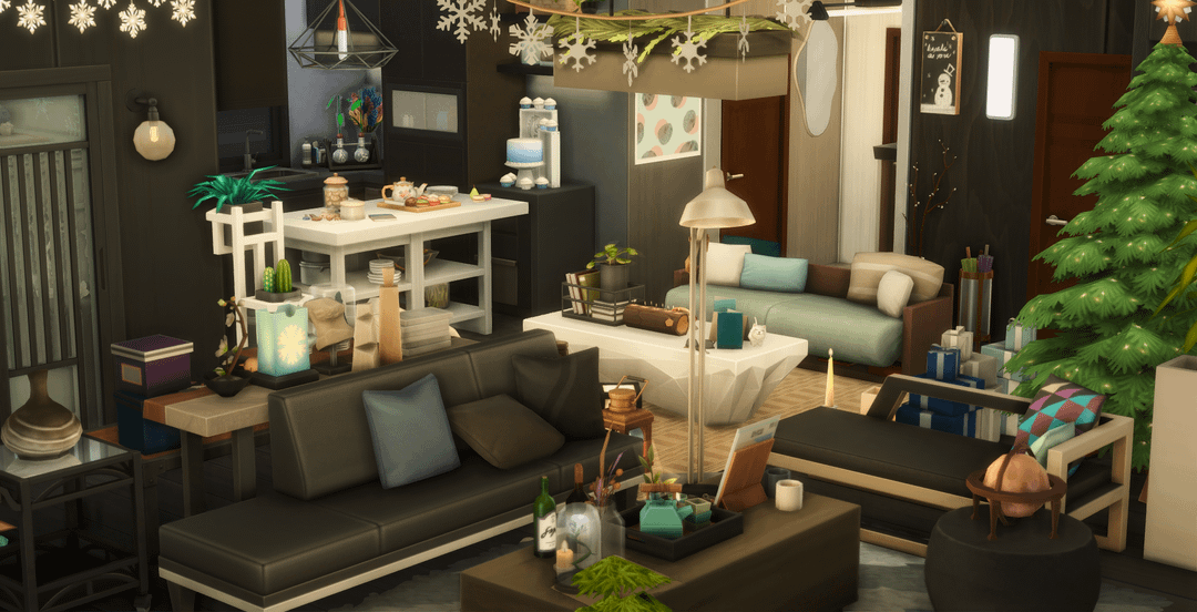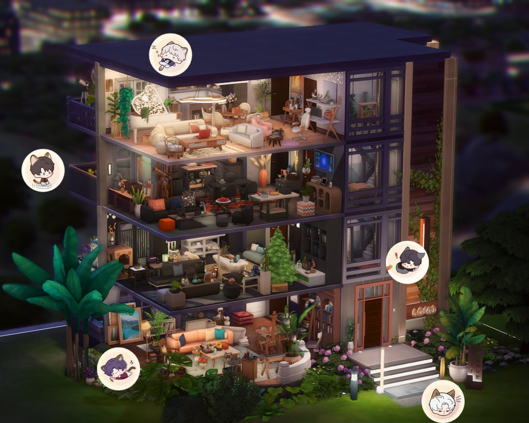 こんにちは、私はシムの愛と深い宇宙にインスピレーションを得てアパートを建てました。サイラスとメフィは地下にいる