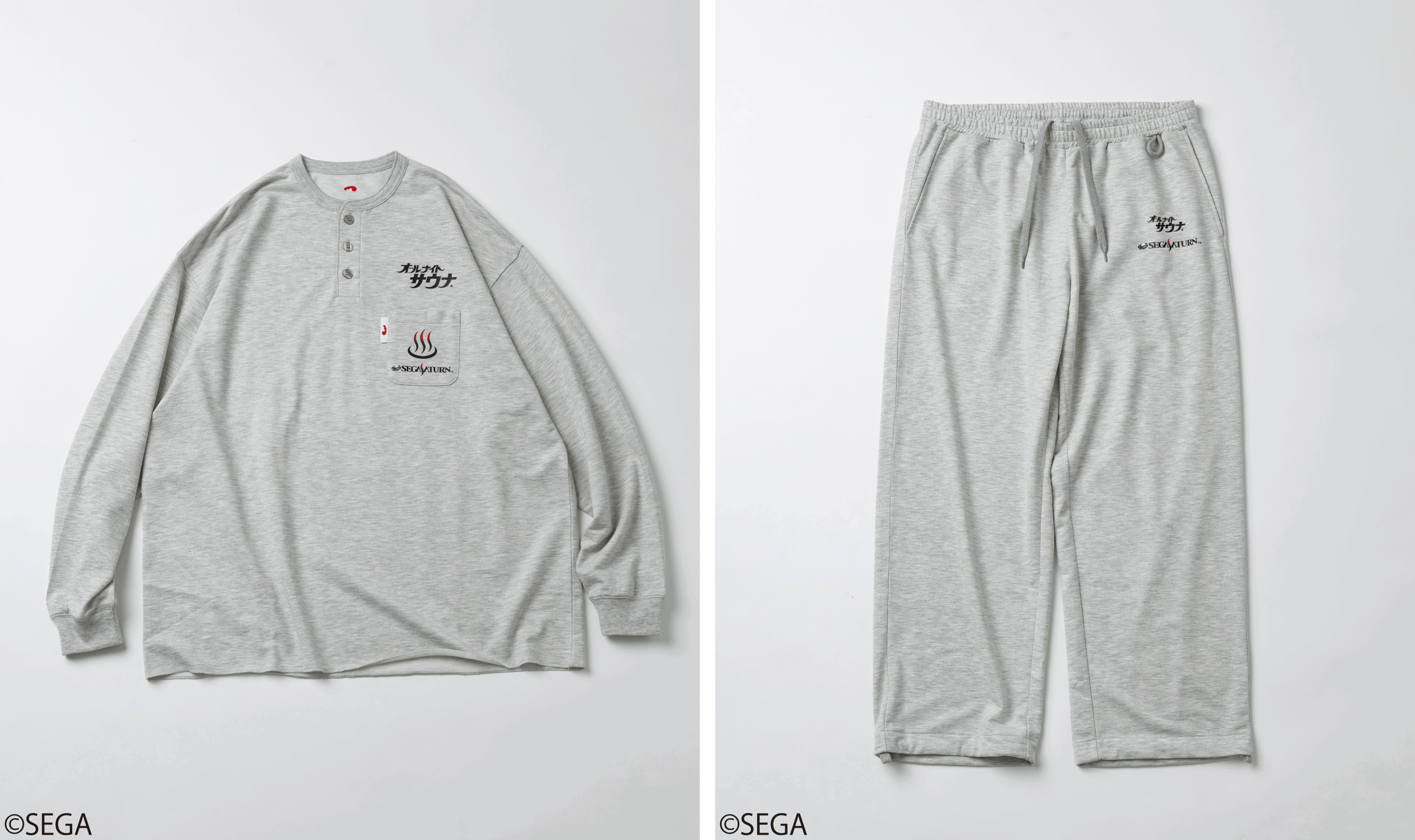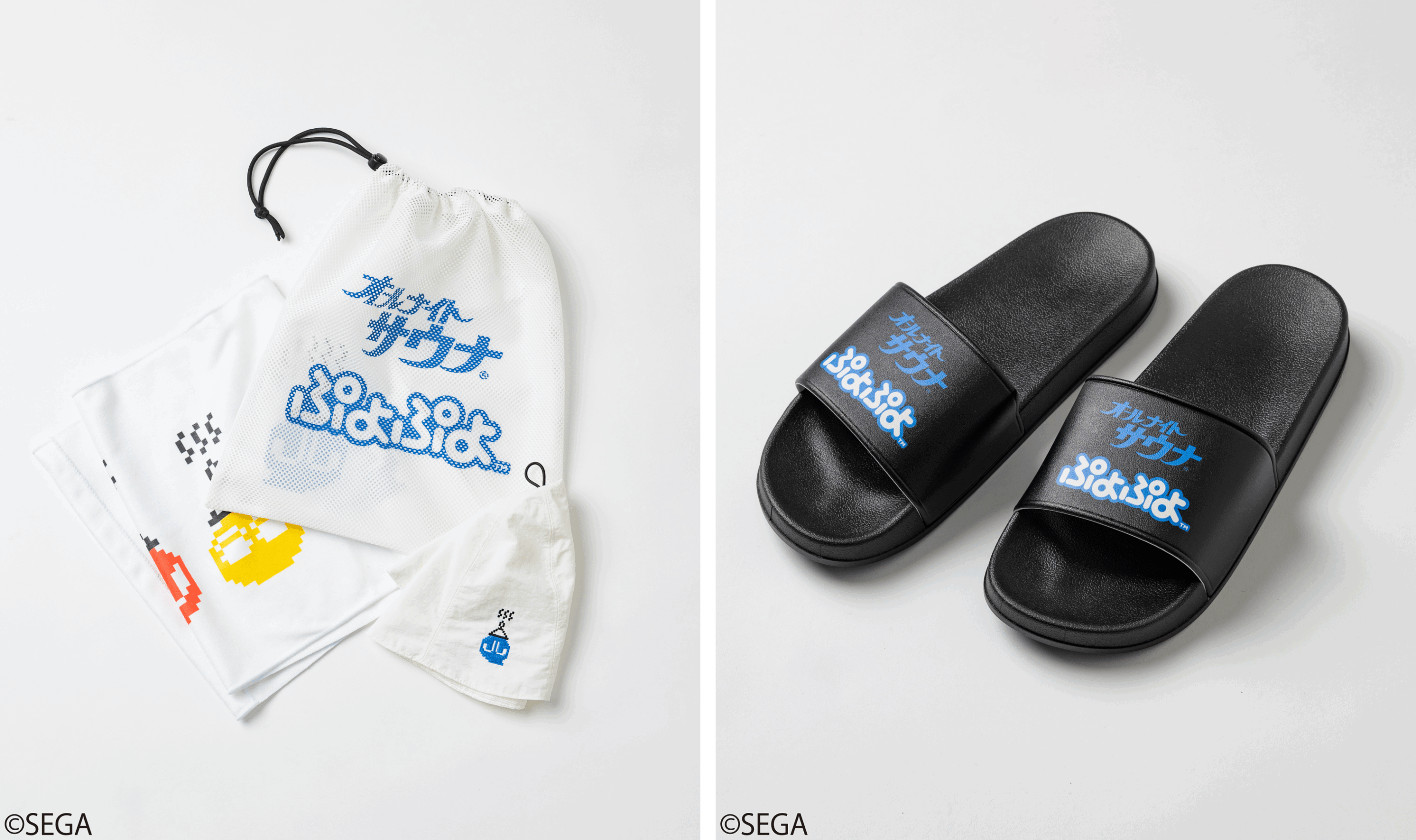 コラボレーションアイテムは、SEGAを代表するゲームであるソニック、龍が如く、ぷよぷよ、NiGHTS、クレイジータクシー、アウトランや、ゲーム機セガサターンをモチーフにしたスウェットをはじめ、様々なグッズ、館内着やサウナセットも展開している。