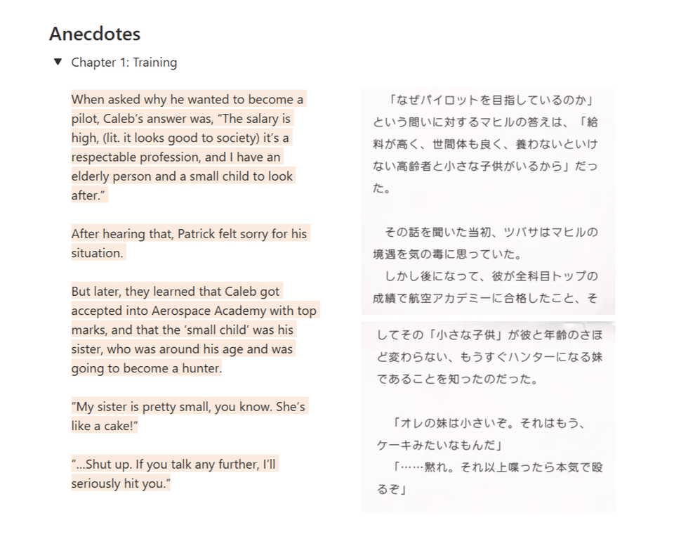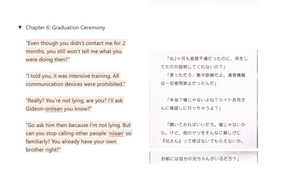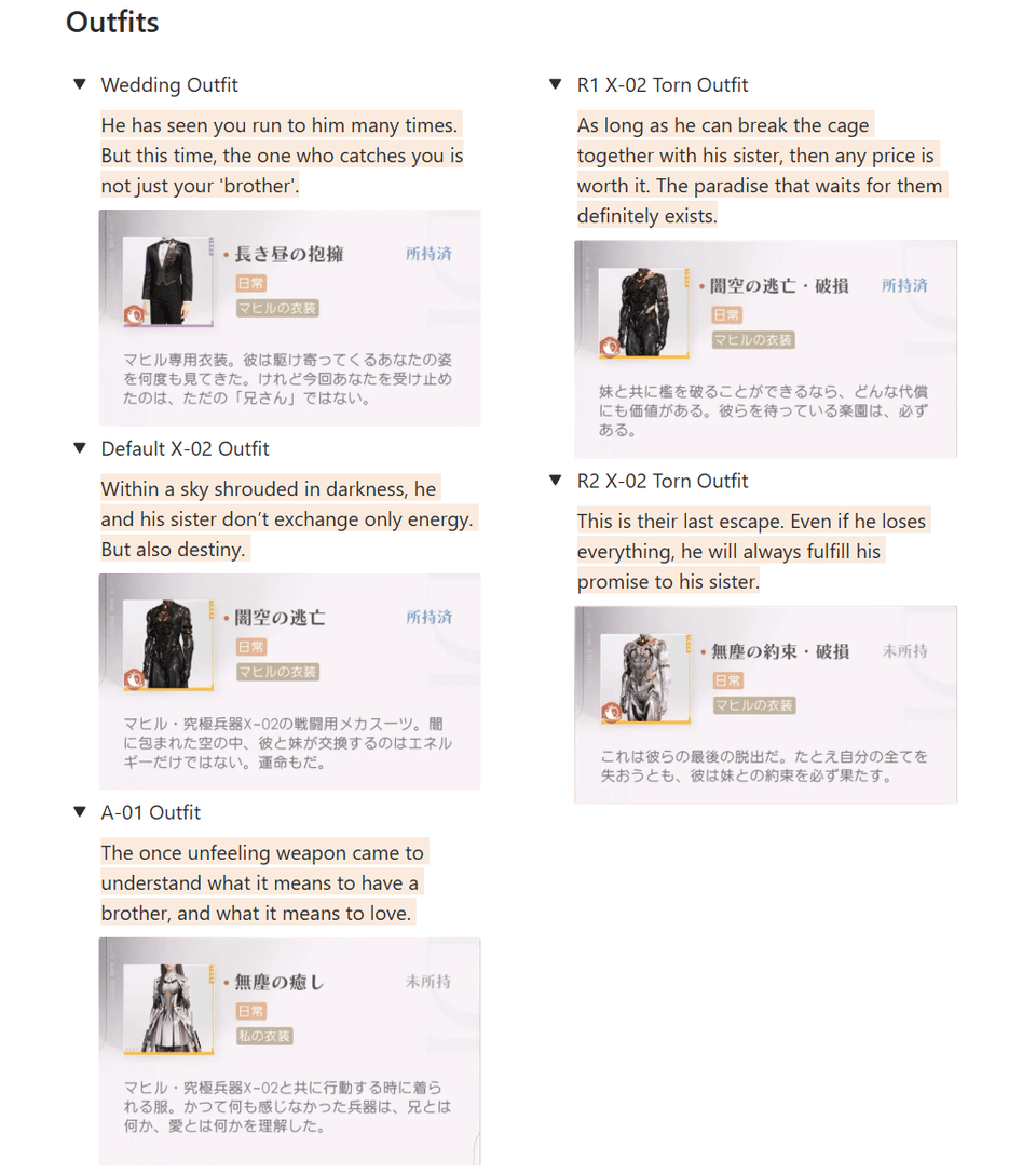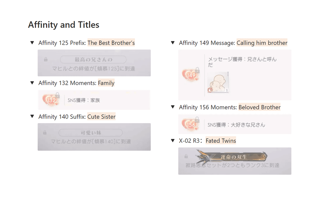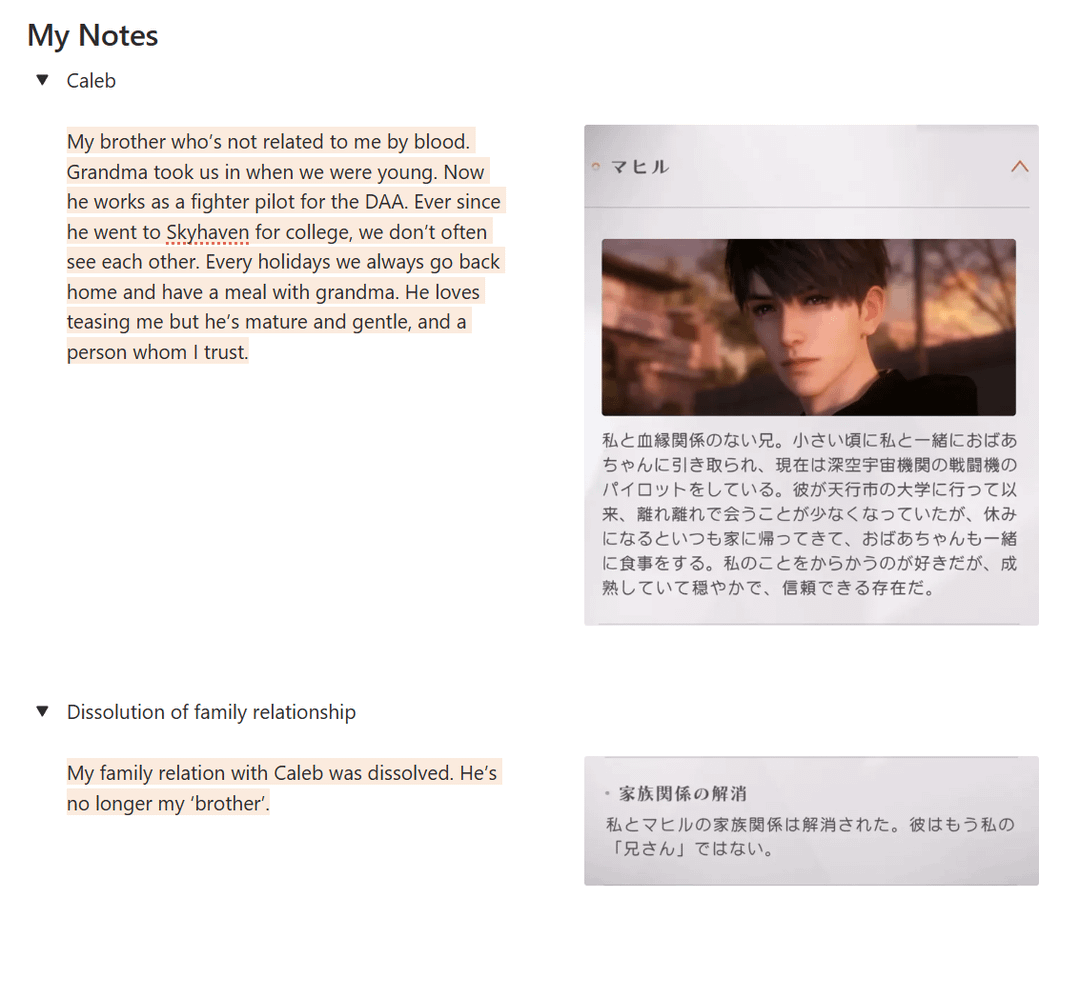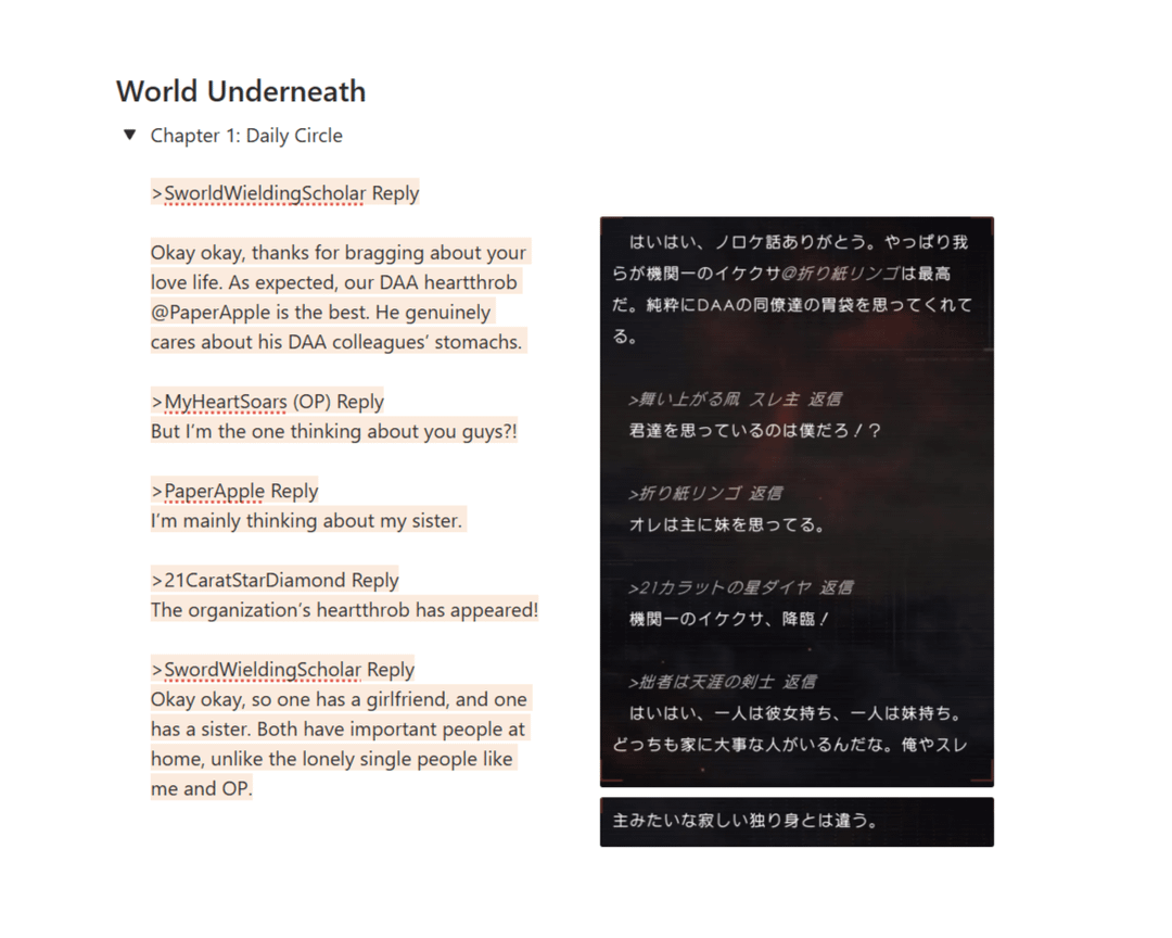 これらはJPからENへの翻訳になります。いつものように CN がオリジナルなので多少の違いはありますが、私にとっては日本語の方が馴染みがあるので、ぜひ編集したかったのです。他の文章や名前がよりスムーズに流れるように、EN loc の翻訳も使用しました。