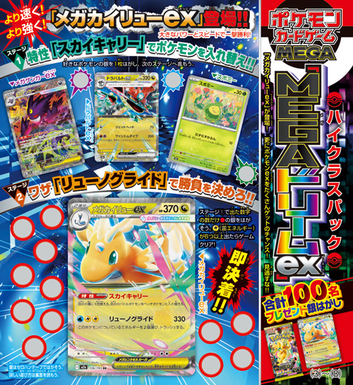 『ポケモンカードゲーム MEGA』からは、ハイクラスパック「MEGAドリームex」1BOXが5名、1パックが95名の合計100名に当たるプレゼント銀はがしを開催!