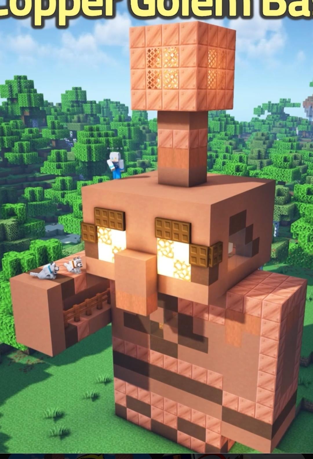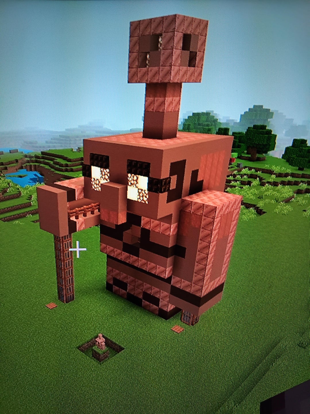 銅のゴーレムベースを作りたかったのですが、とても良いものを見つけました(2枚目の画像)ので参考にさせていただきました。参照をゲーム内の銅製ゴーレム像と比較するときに必要と思われる編集を行いました(例:体の幅を広げるなど)。
