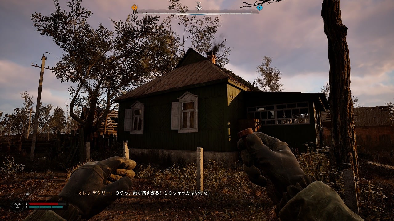 筆者が『S.T.A.L.K.E.R. 2』をプレイしてまず感じたのは、難易度の高さだ。サバイバルゲームとして、生き残ることが難しい。そしてこの難しさが、生きていくこと自体が難しい、チョルノービリという寒冷地帯の環境を擬似的な形でプレイヤーに体験させている。冬が長く続き、日照時間が少なく、酒とボルシチのような温かい高カロリー食品が生活に根付いている環境だ。仕事でクタクタになり、帰宅後ホッと一息ついてすぐ、冷蔵庫から酒を1缶取り出したくなる、そんな環境である。