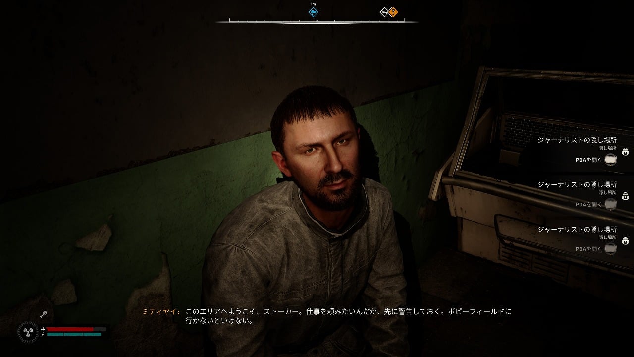 この没入感を生み出すうえで屋台骨となっているのが、本作が持つ独特の雰囲気と、それに適応していくプレイヤー自身の姿である。正義や秩序が存在しないZONEを満たすのは、危険と飢えだ。アノマリーやミュータントといった死そのものが蠢く世界で、登場人物のほとんどは、自分が所属する派閥に利益をもたらすことを目的として活動している。