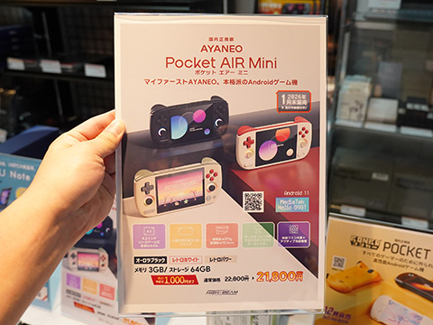4.2インチディスプレイのレトロゲーム向けAndroidゲーム機「AYANEO Pocket Air Mini 国内正規版」を天空が2026年1月17日(土)に発売する。カラーはレトロホワイト、オーロラブラック、レトロパワーの3つ。