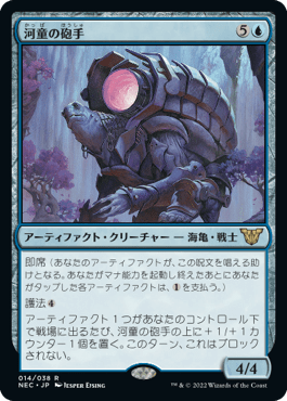 《》は「ワープ」で唱えればわずか1マナで戦場に出すことができ、大量のアーティファクトトークンを並べることができる有力な新戦力だ。これにより《》や《》といった「親和」や「即席」といったキーワード能力が飛躍的に強化され、”爆発力”と”縦の強さ”を両立している。