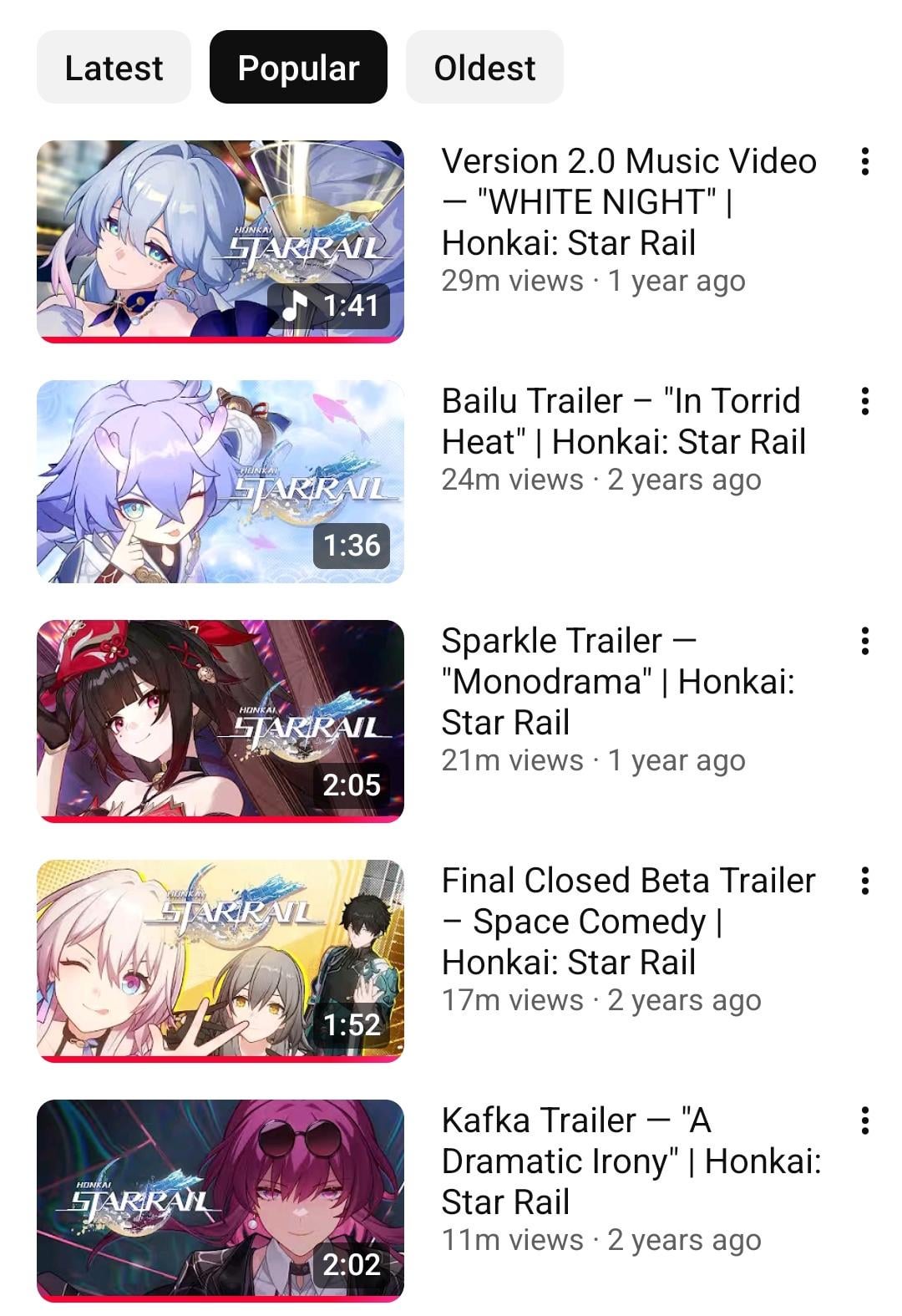 6 か月以内に、プロイプロイはスター レール YT チャンネルで最も視聴されたビデオのトップ 10 に入りました。
