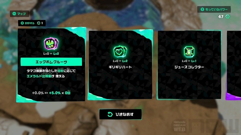 ・エメラルドパワー選択画面で、エメラルドパワーの封印ができない
