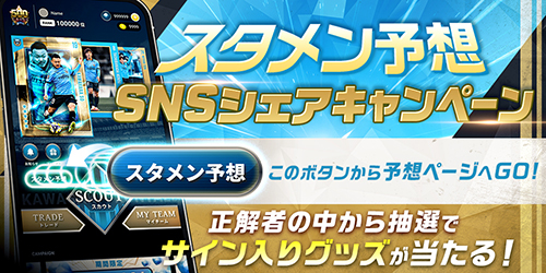 11月30日(日)開催の明治安田J1リーグ第37節 サンフレッチェ広島戦のスターティングメンバーを予想し、見事的中した方の中から抽選で3名様にサイン入りグッズをプレゼント!