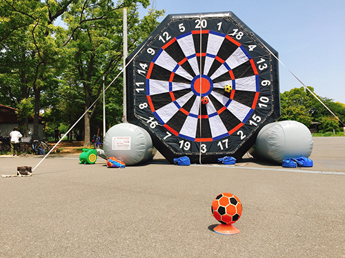 1人3球ボールを蹴り、蹴ったボールがついた場所の得点を合計。
