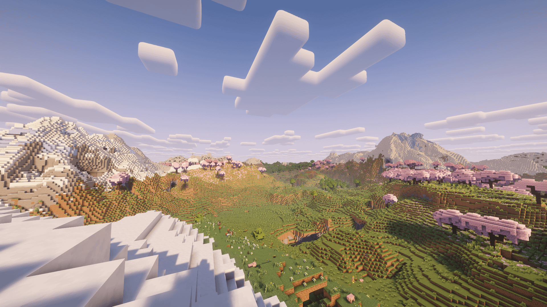 大きな山がいくつかあり、桜の森があり、その隣には村、略奪者の前哨基地、そしてキノコの森の島があります。シードは -1678614447116280997 、コードは 209/115/-1003 また、言い忘れていましたが、山の下には、深い暗闇に覆われた巨大な開いた洞窟があります。 by Low_Stage_1661