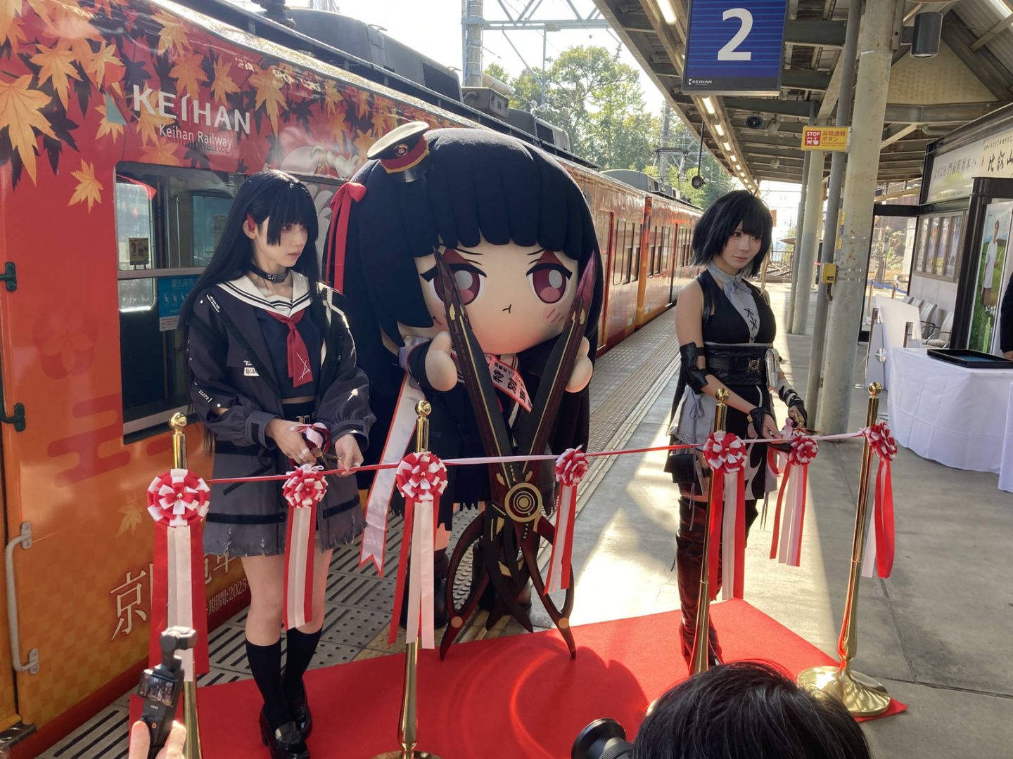弊誌は、『鳴潮』と京阪電車によるコラボを記念したセレモニーに参加した。セレモニーでは公式コスプレイヤーが登場しコラボ記念のテープカットが行われたほか、着ぐるみの千咲が特別車掌に就任することも発表。本稿では、当日に撮影した写真を交えながらセレモニーの模様をお伝えしたい。