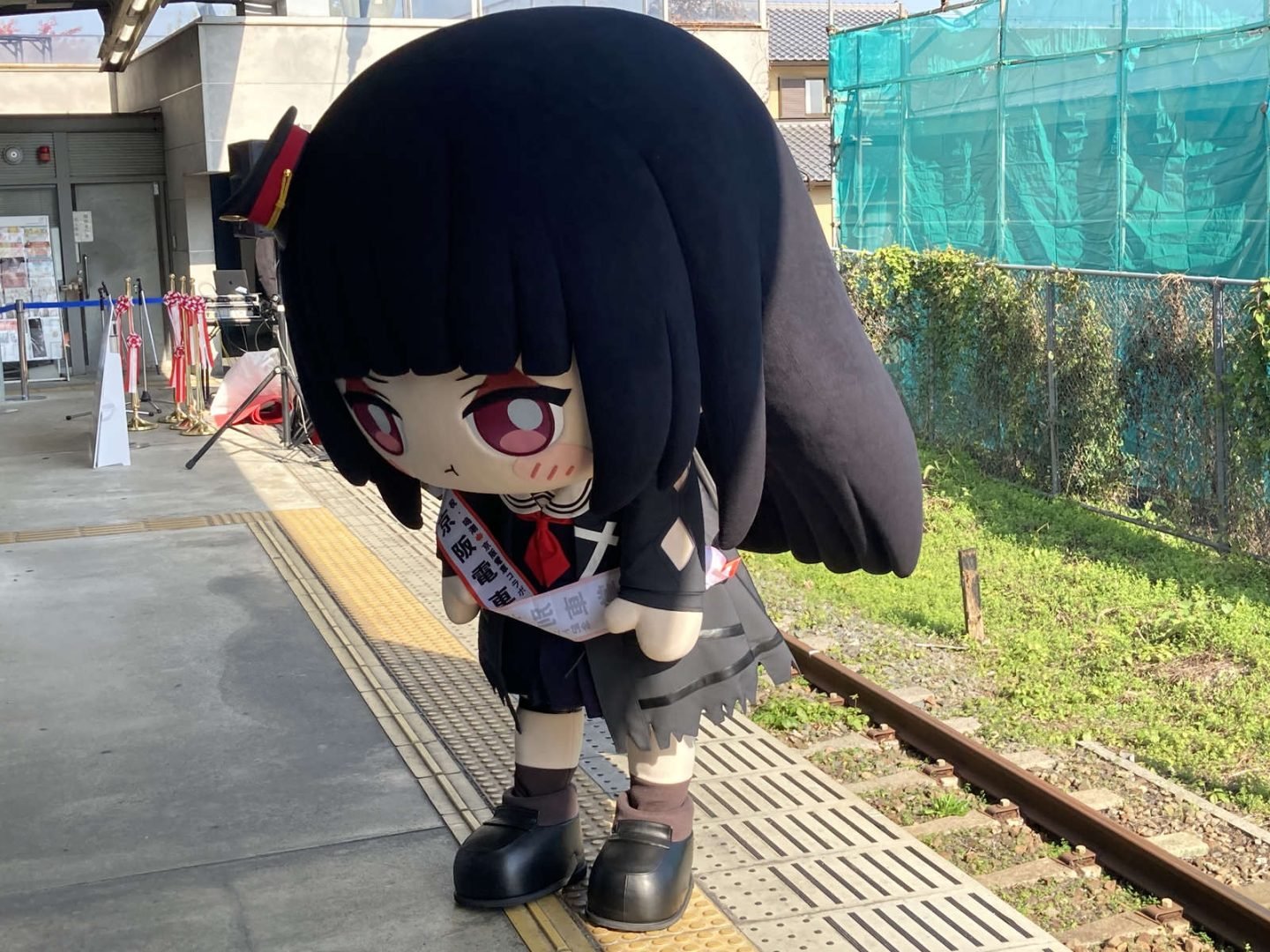 千咲がゲームで見せるクールな表情とは裏腹に、着ぐるみはなぜかふくれっ面だったのもおもしろい。そんな彼女をなだめるかのように、着ぐるみの千咲が特別車掌に就任することがまず発表された。生身の千咲よりも先に祝福されることになったので、着ぐるみの千咲もご満悦だったようだ。