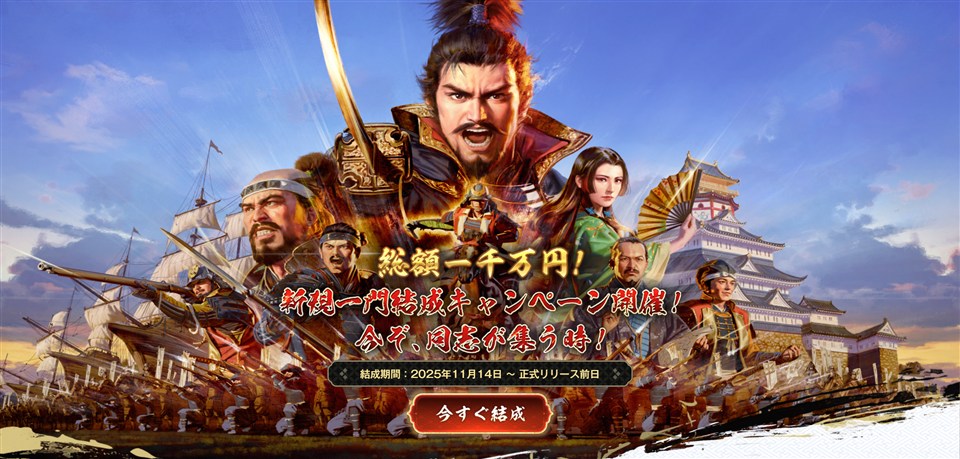 正式リリースに先駆けて、『信長の野望 真戦』では、新規一門向けの大型キャンペーンを開催する。今こそ、同志が集う時。戦乱の狼煙が上がる戦国の世で、仲間と共に一門を結成し、新たな歴史を切り拓こう。